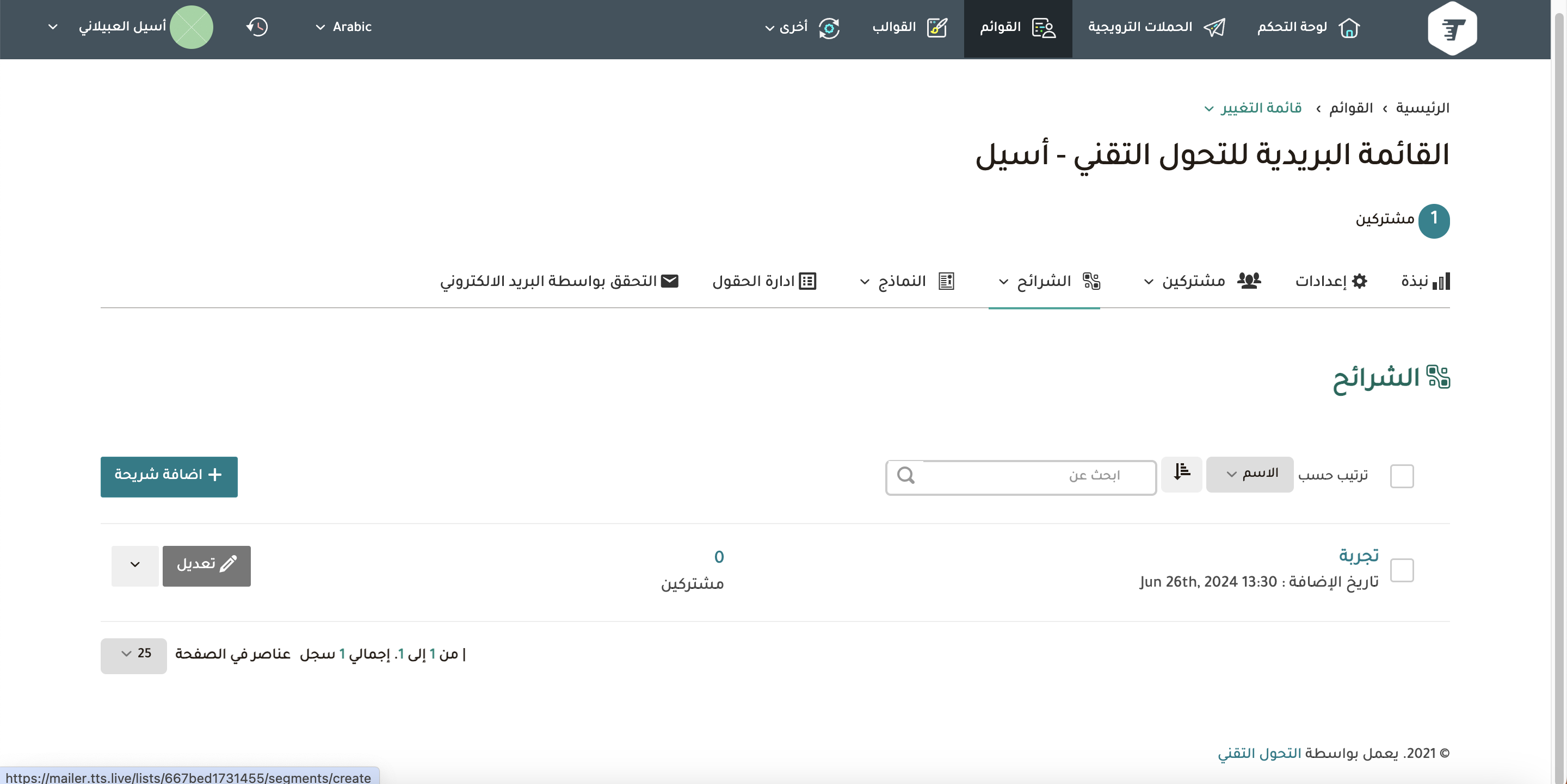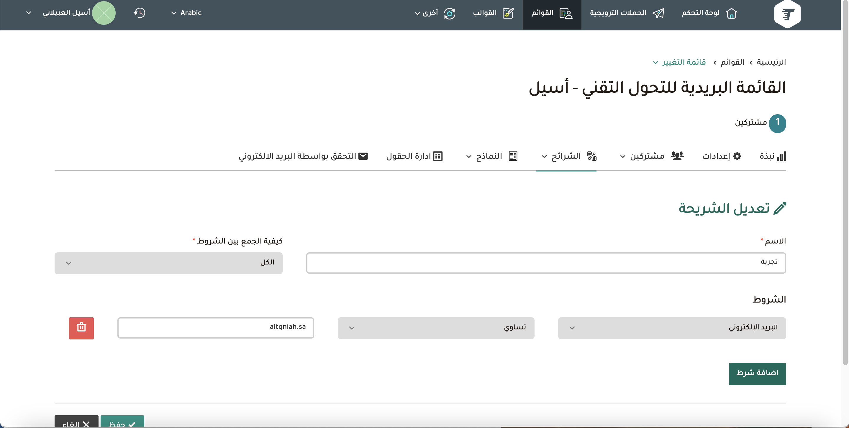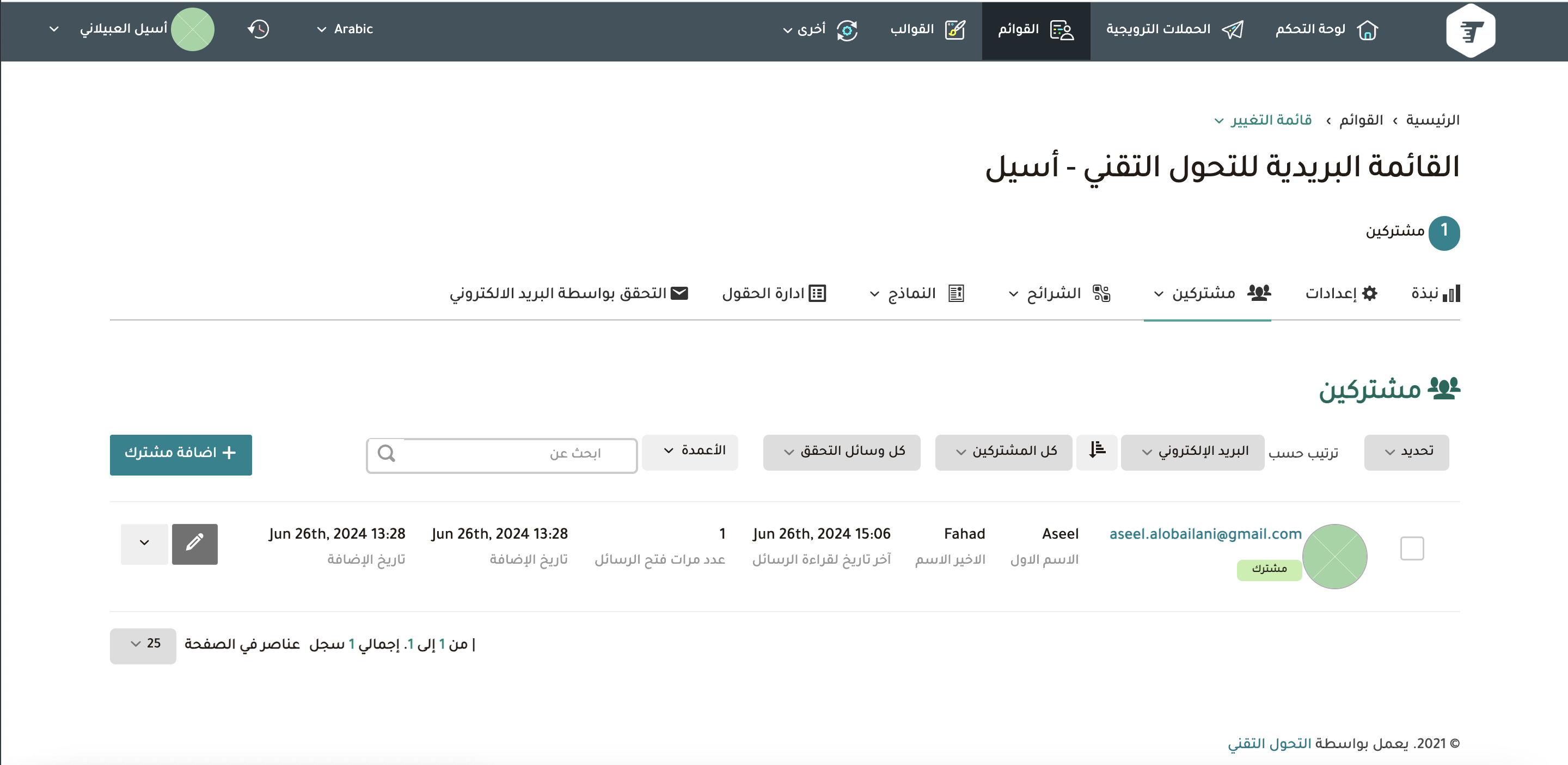 - تعديل مشترك: من القائمة العلوية > القوائم > إجراءات على القائمة > المشتركين.