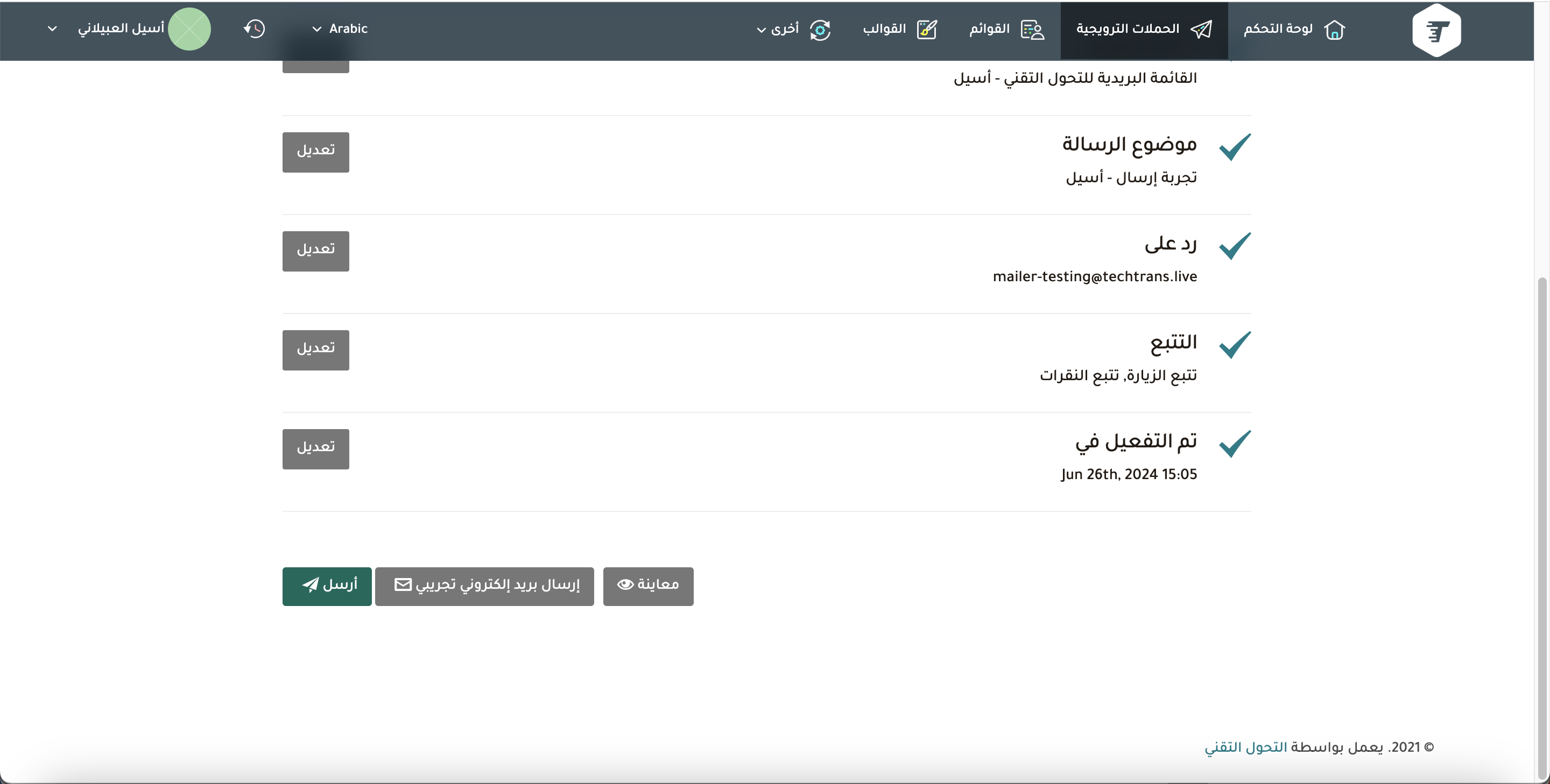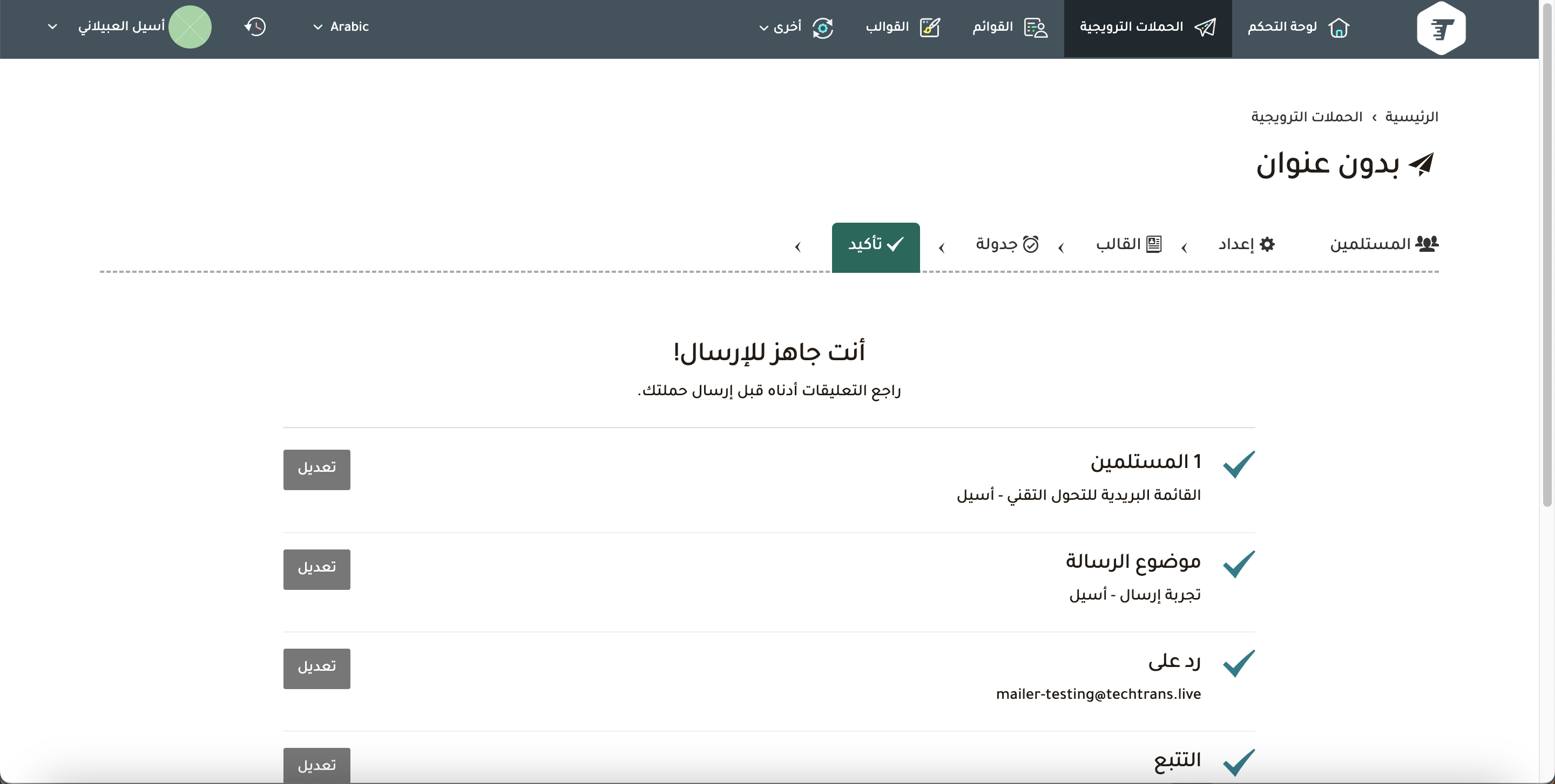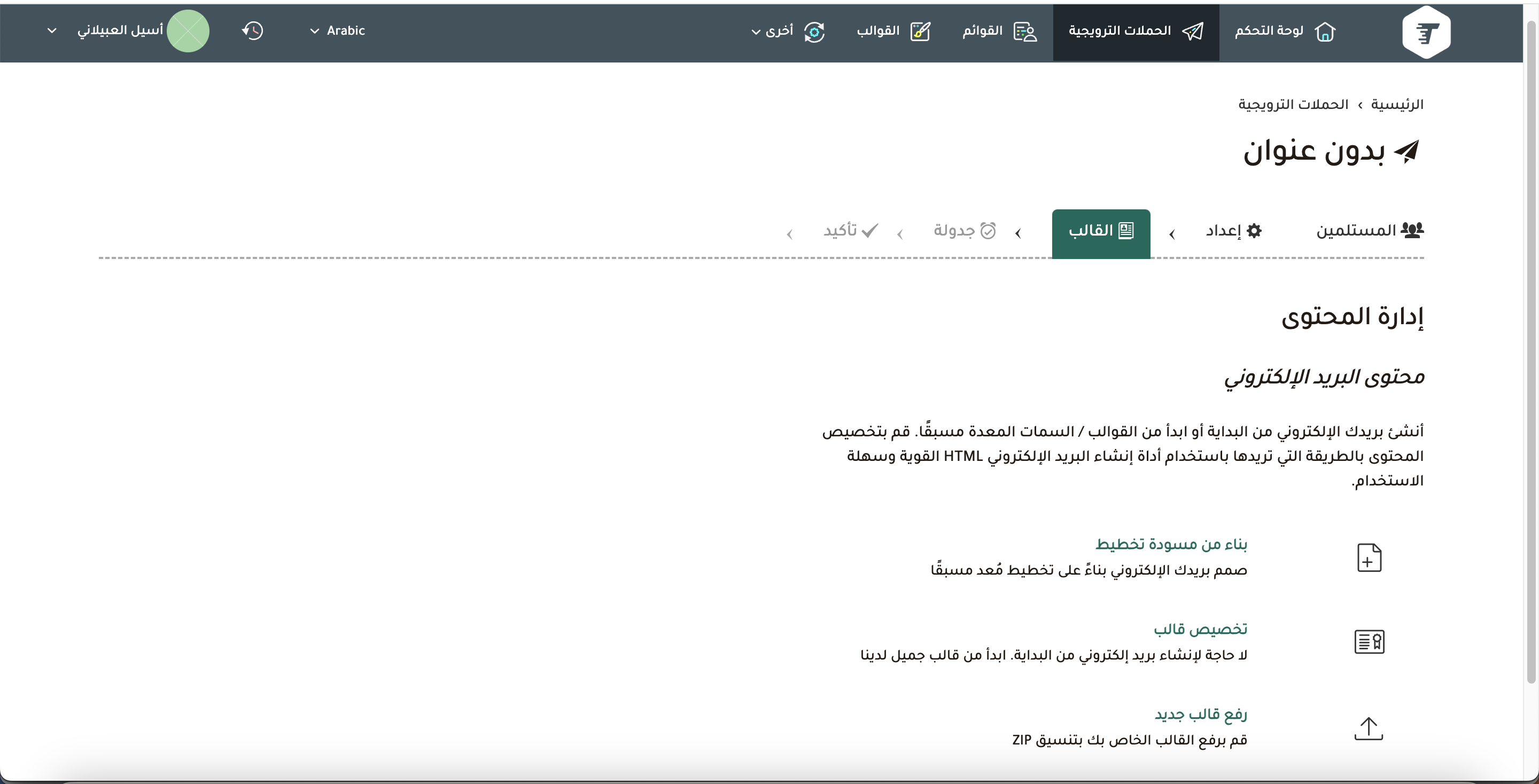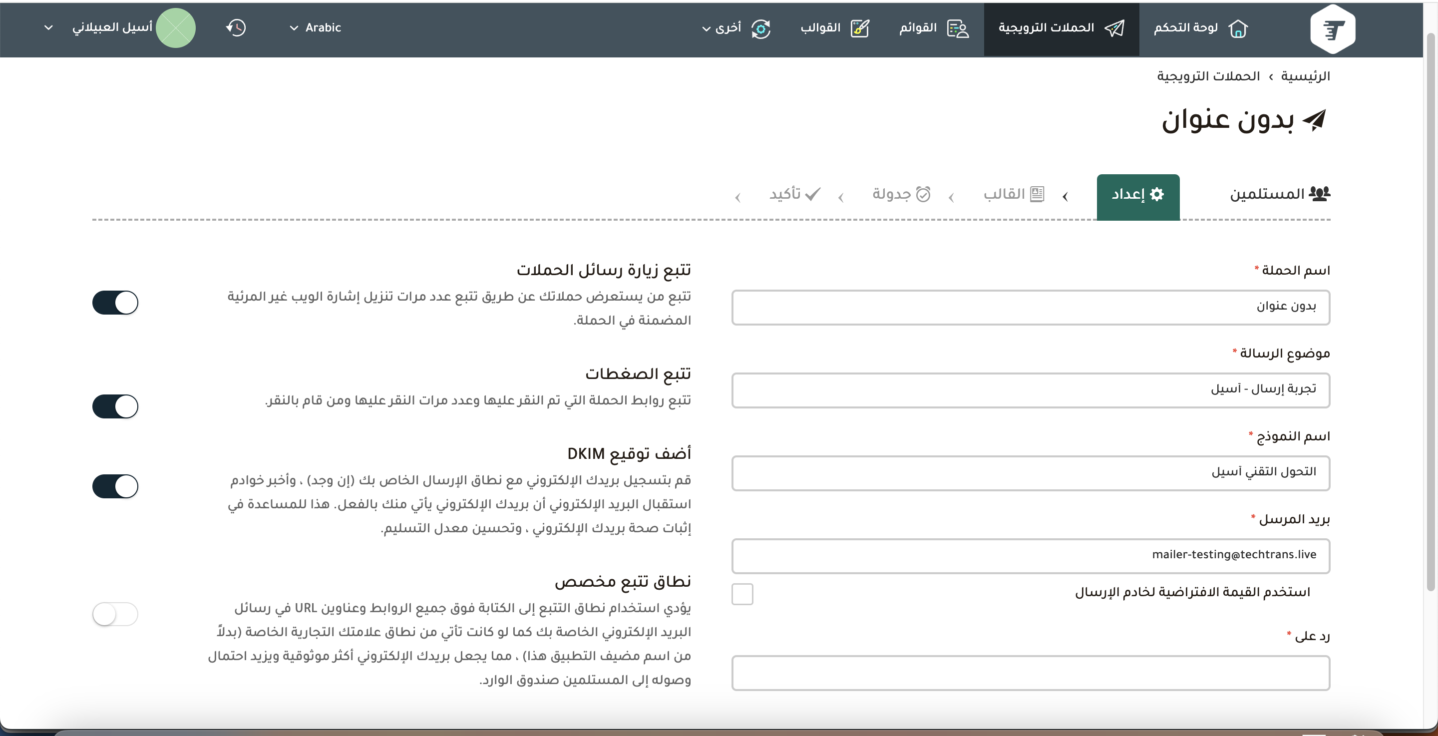 - إعداد الحملة (الاسم + الموضوع + المرسل).