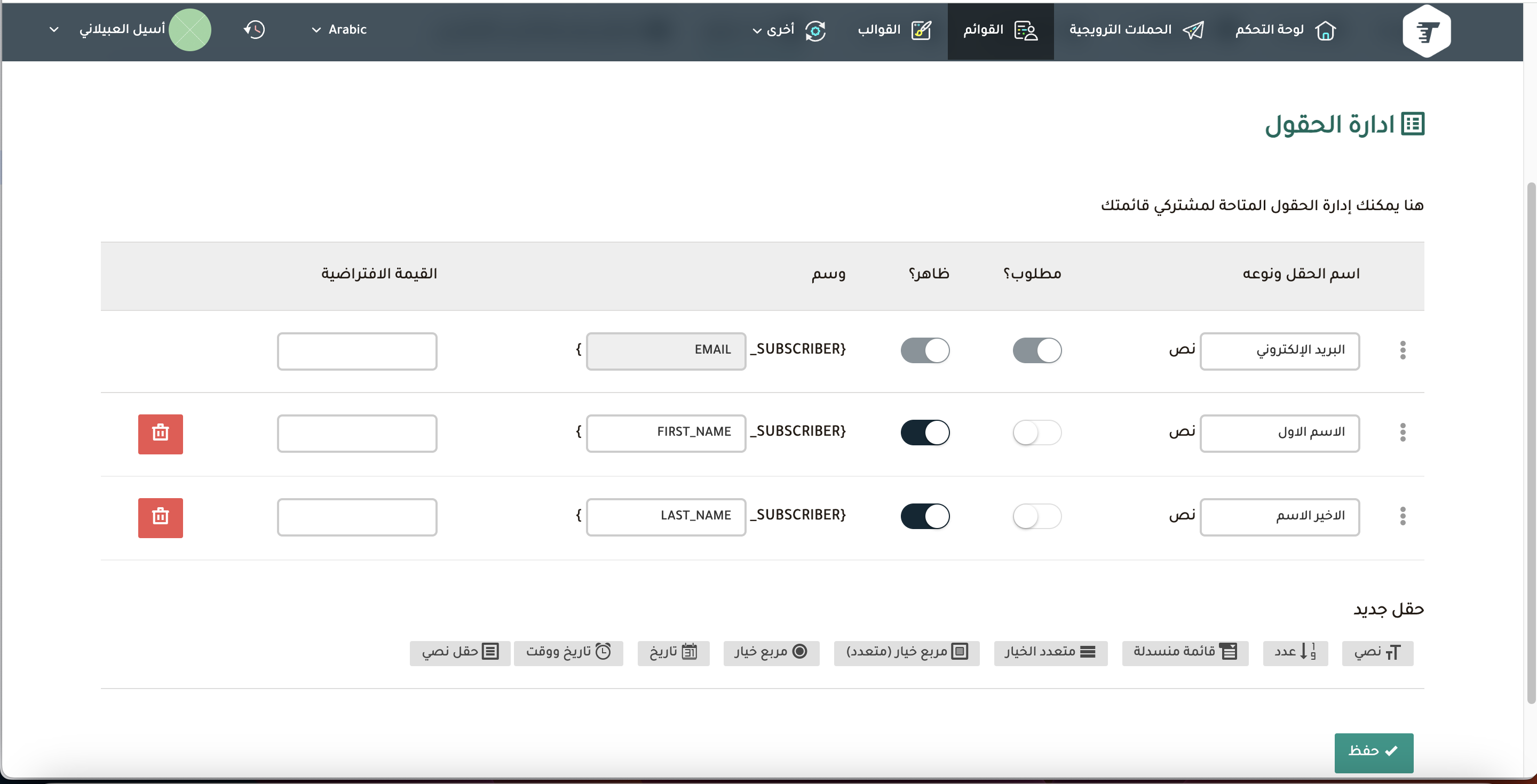 - تعديل حالة الحقل (مطلوب او اختياري).