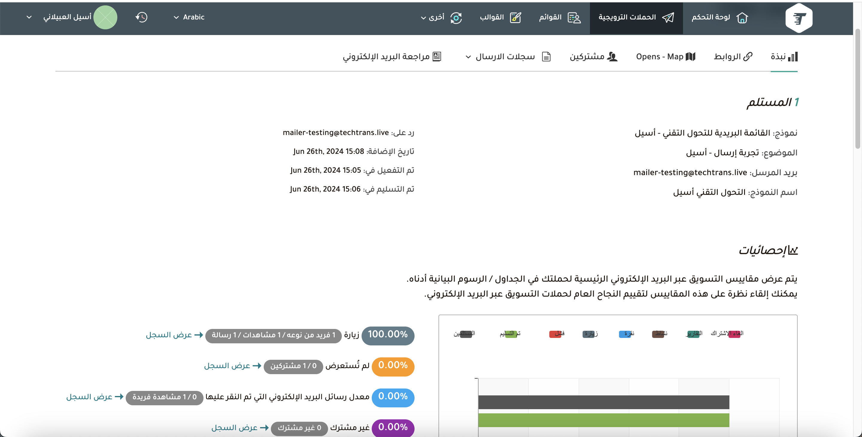 - إحصائيات الحملة: من القائمة العلوية > الحملات الترويجية > احصائيات.