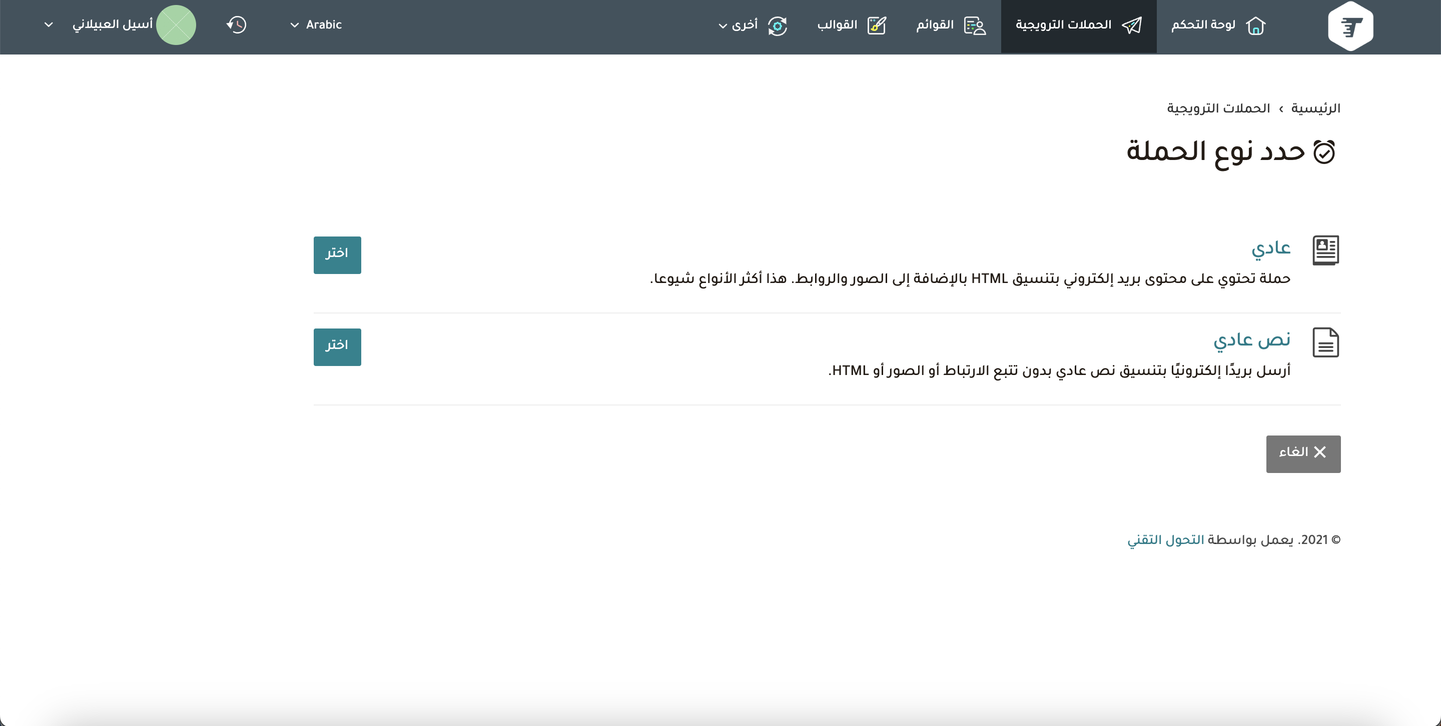 - تحديد نوع تنسيق الحملة (نص او HTML).