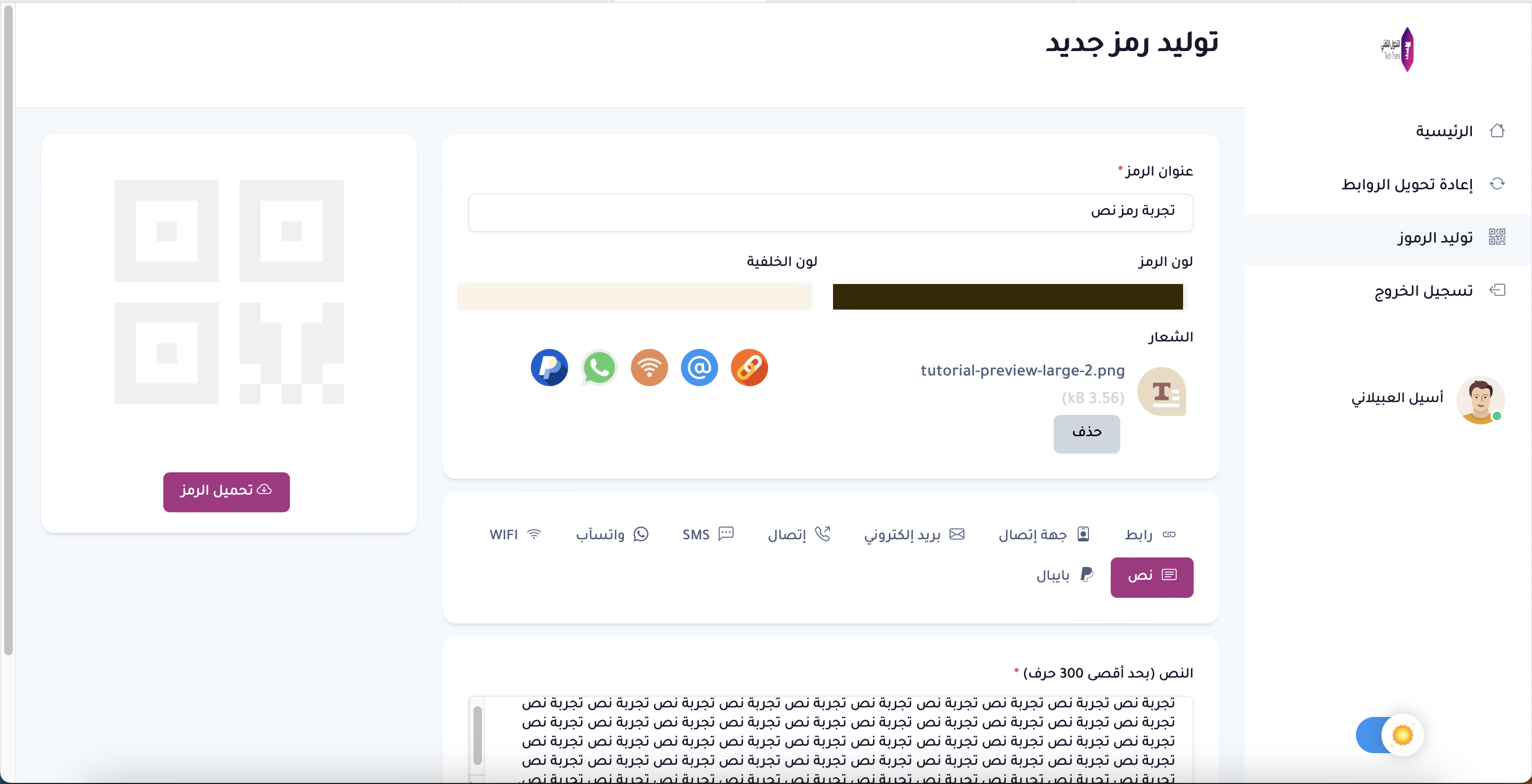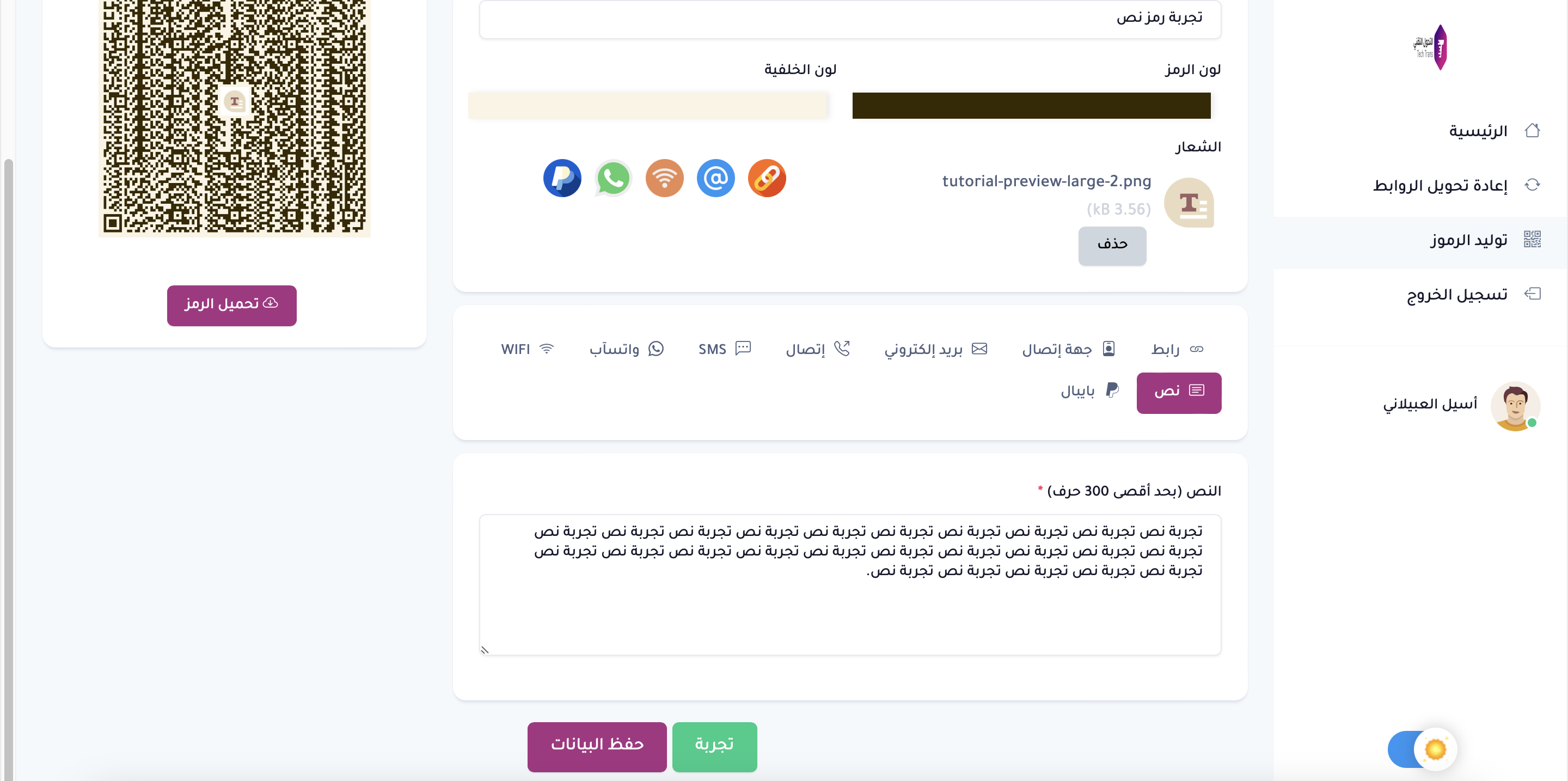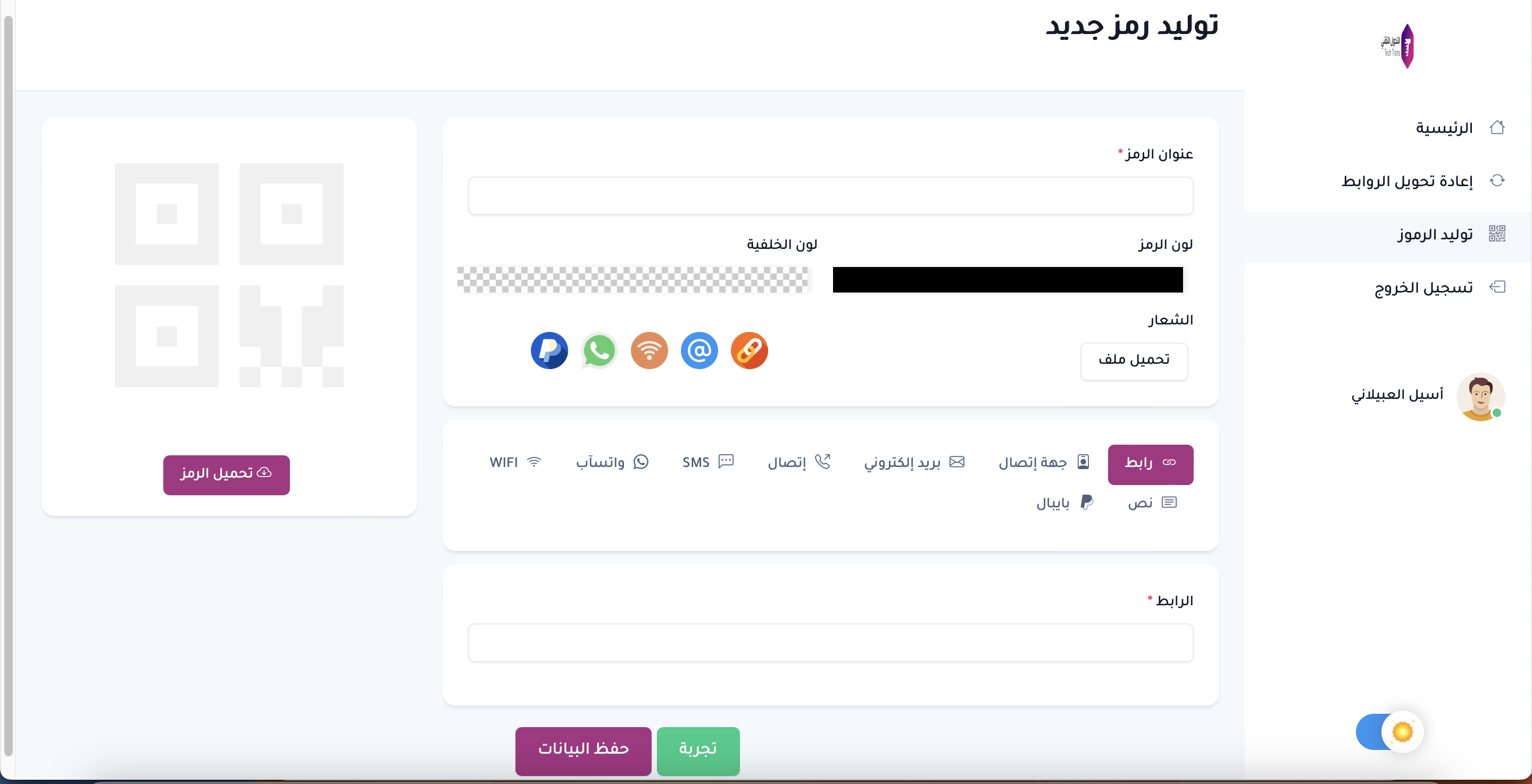 - الصفحة الرئيسية يتم عرض إحصائيات بعدد الروابط المحولة والرموز المولدة عن طريقك: