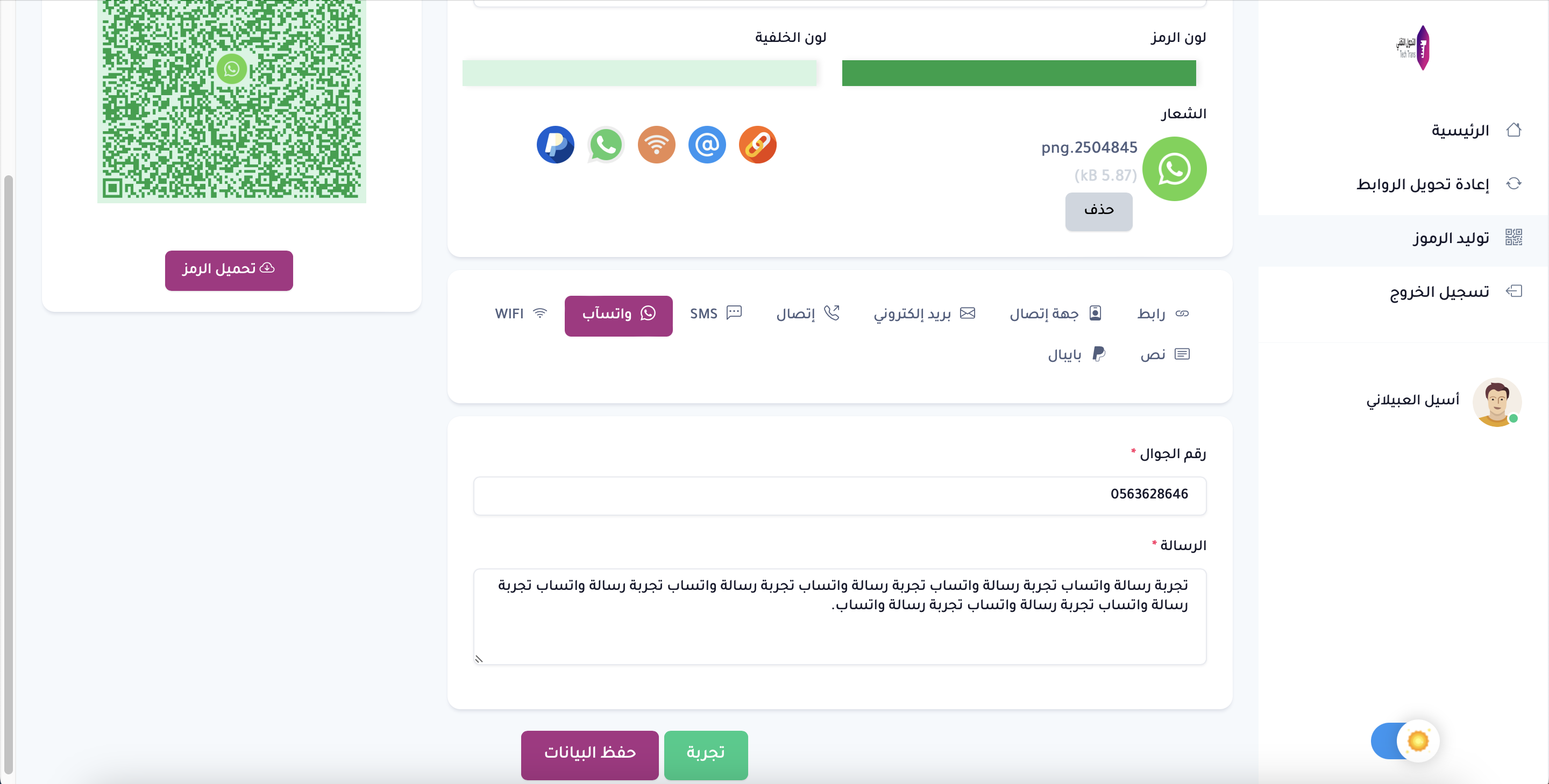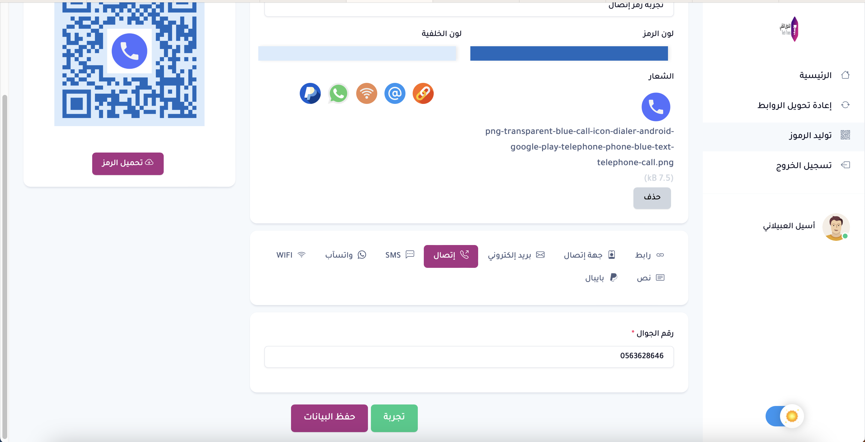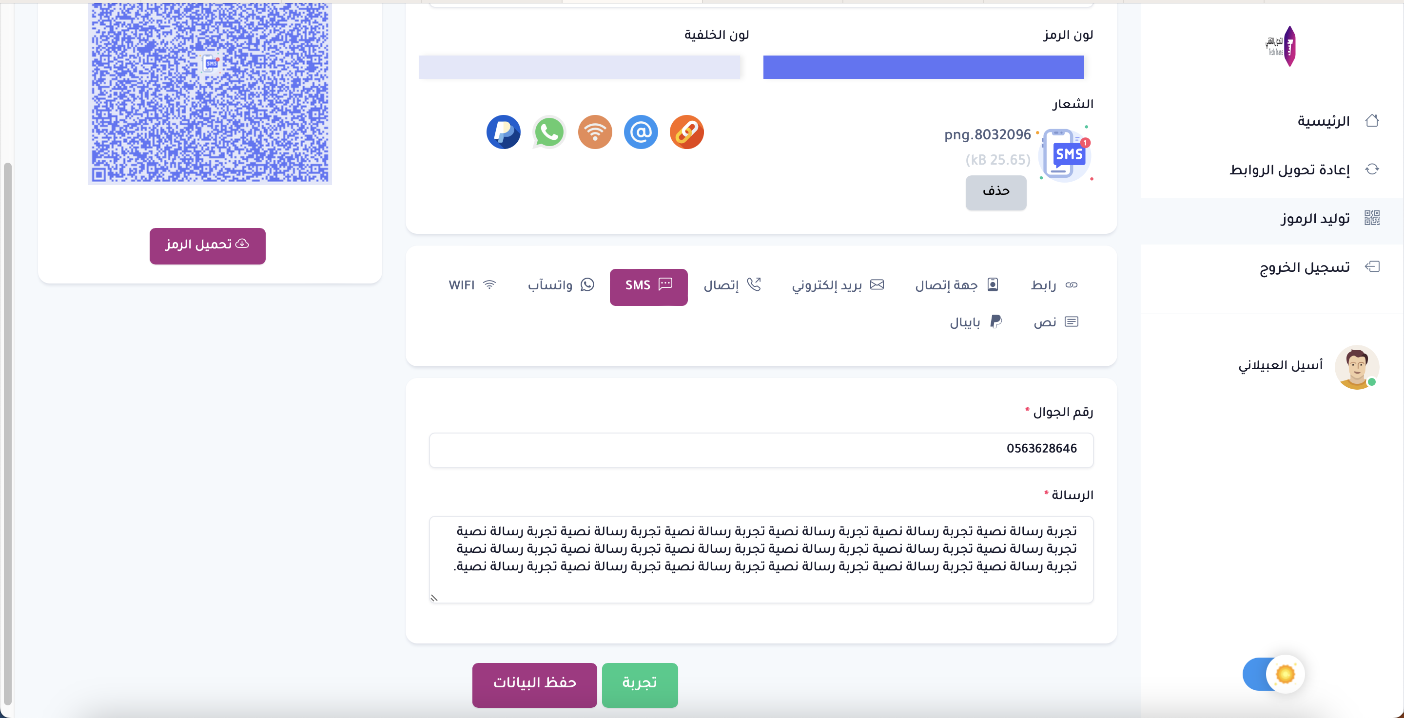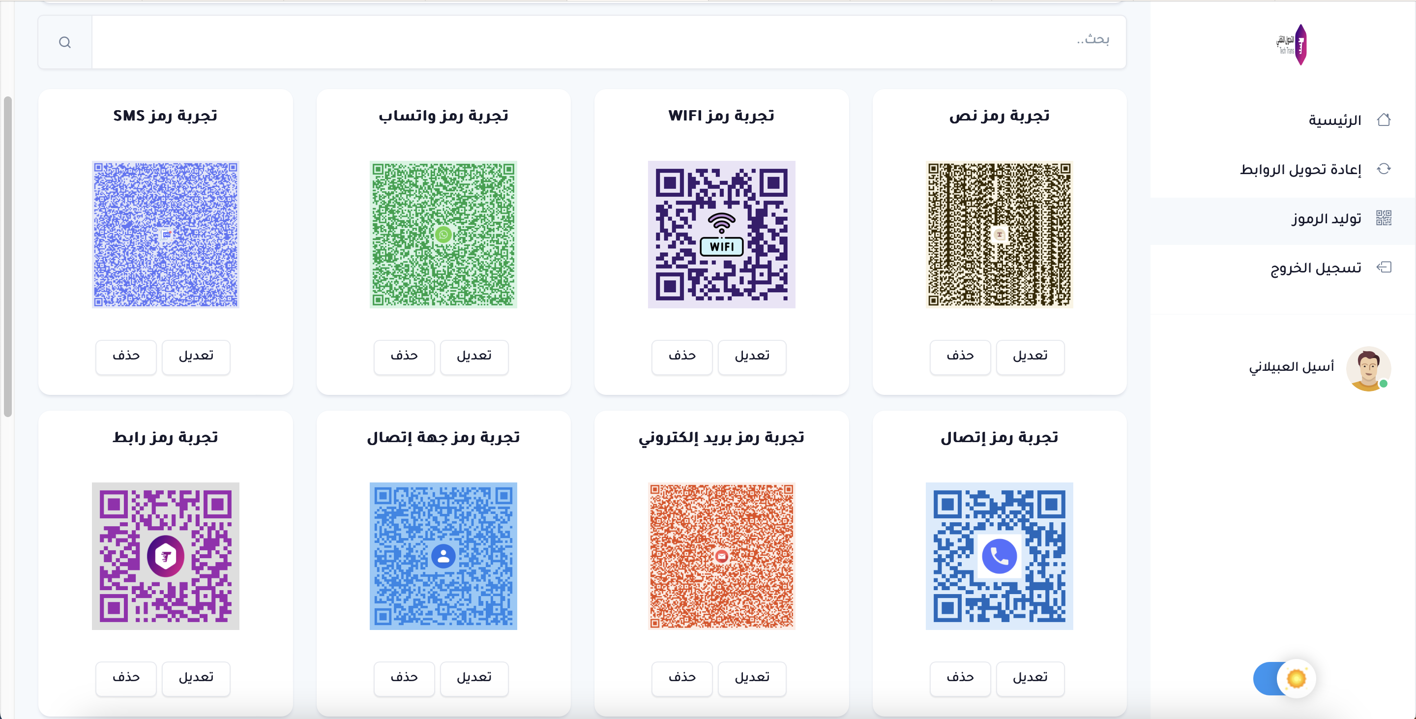 - الصفحة الرئيسية يتم عرض إحصائيات بعدد الروابط المحولة والرموز المولدة عن طريقك: