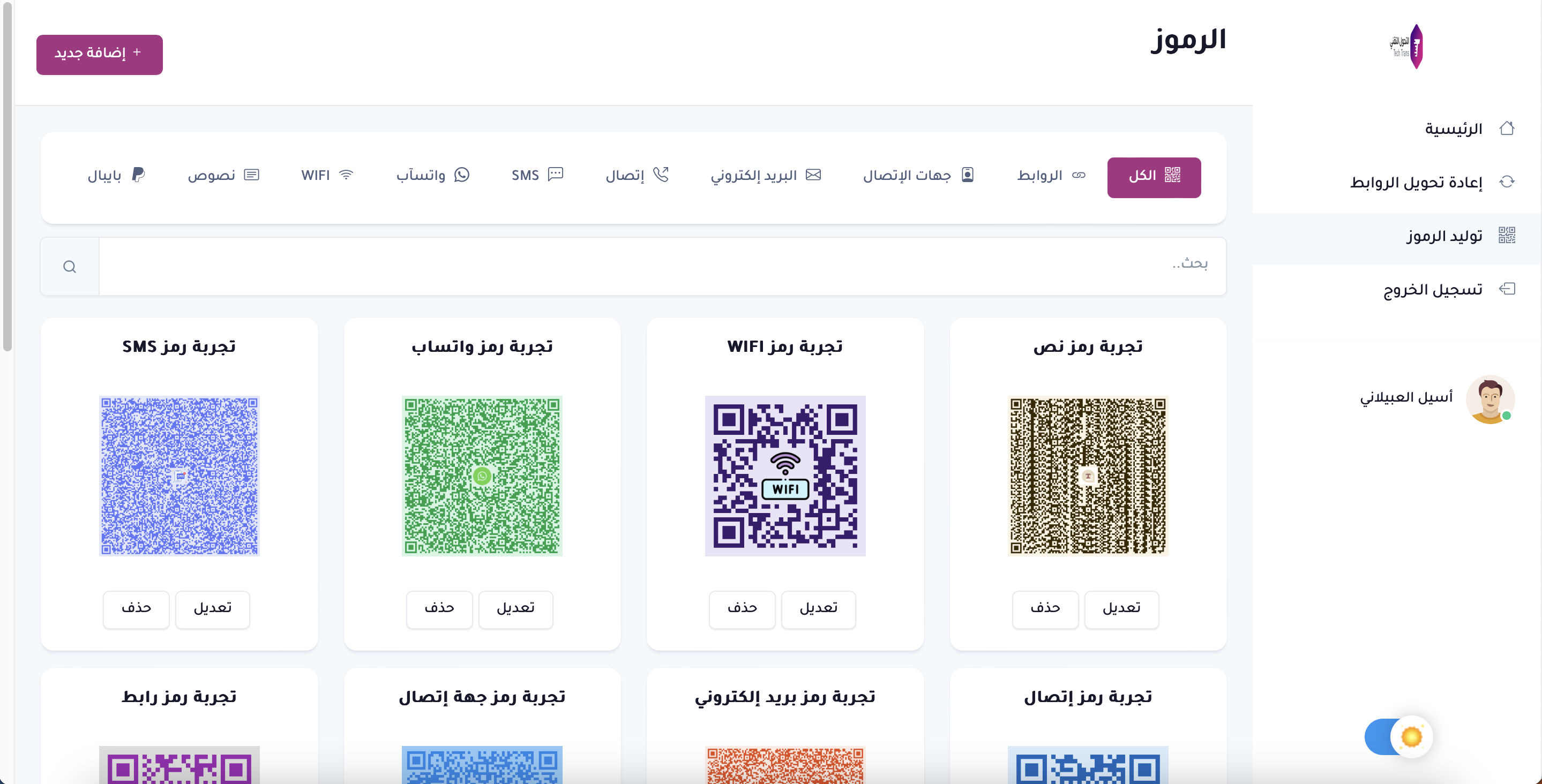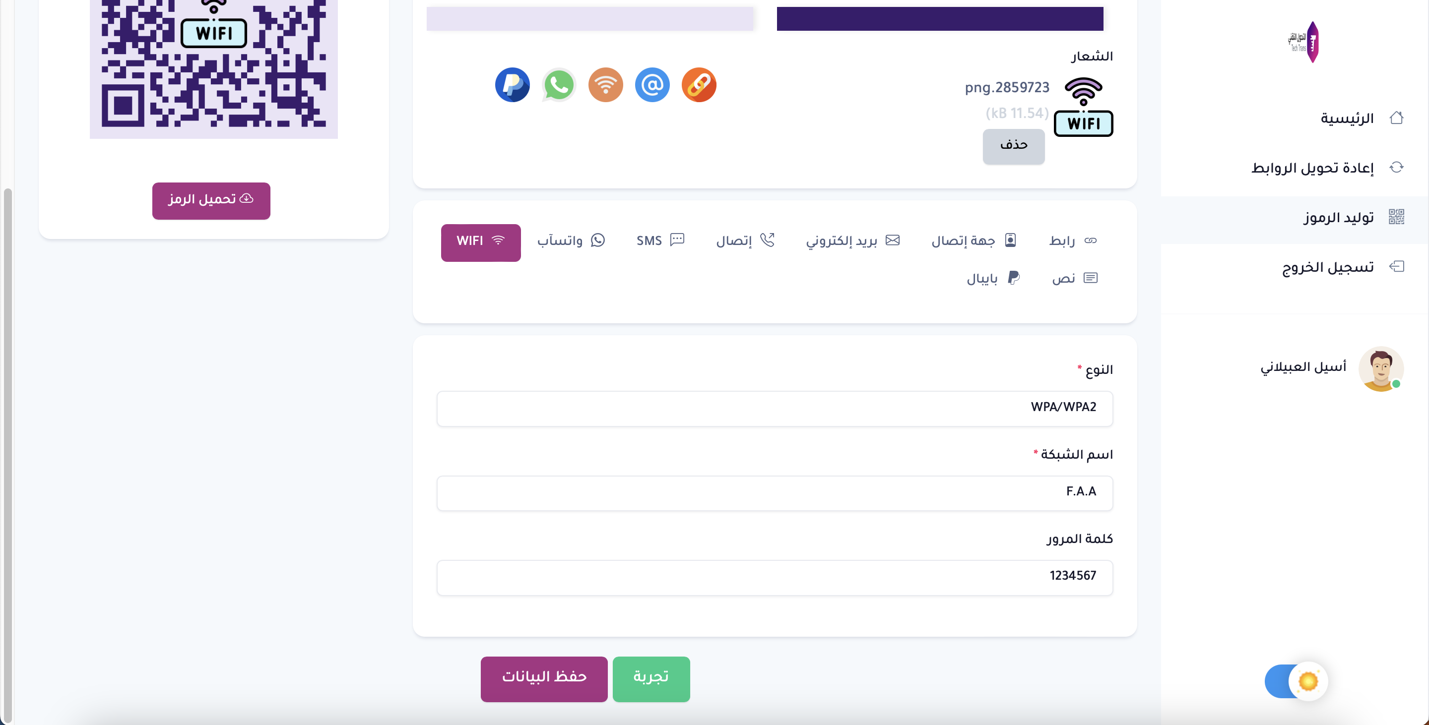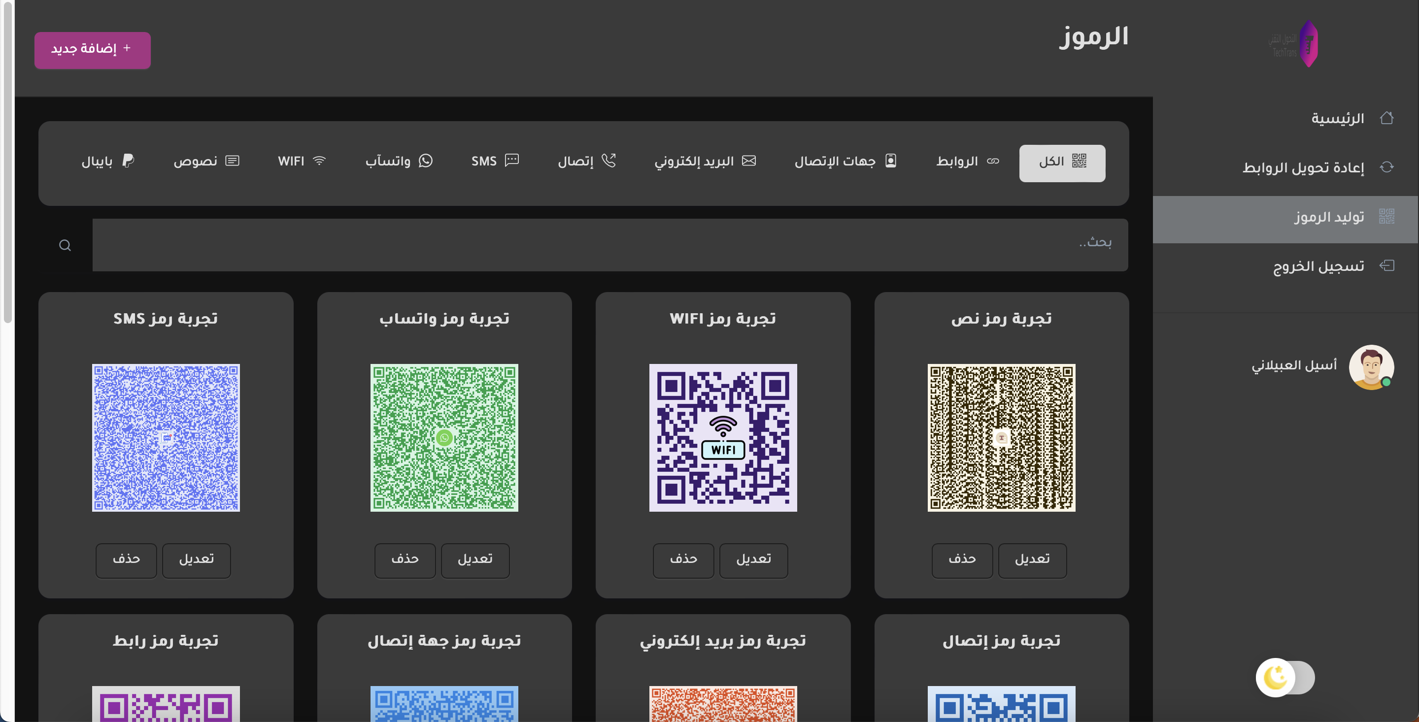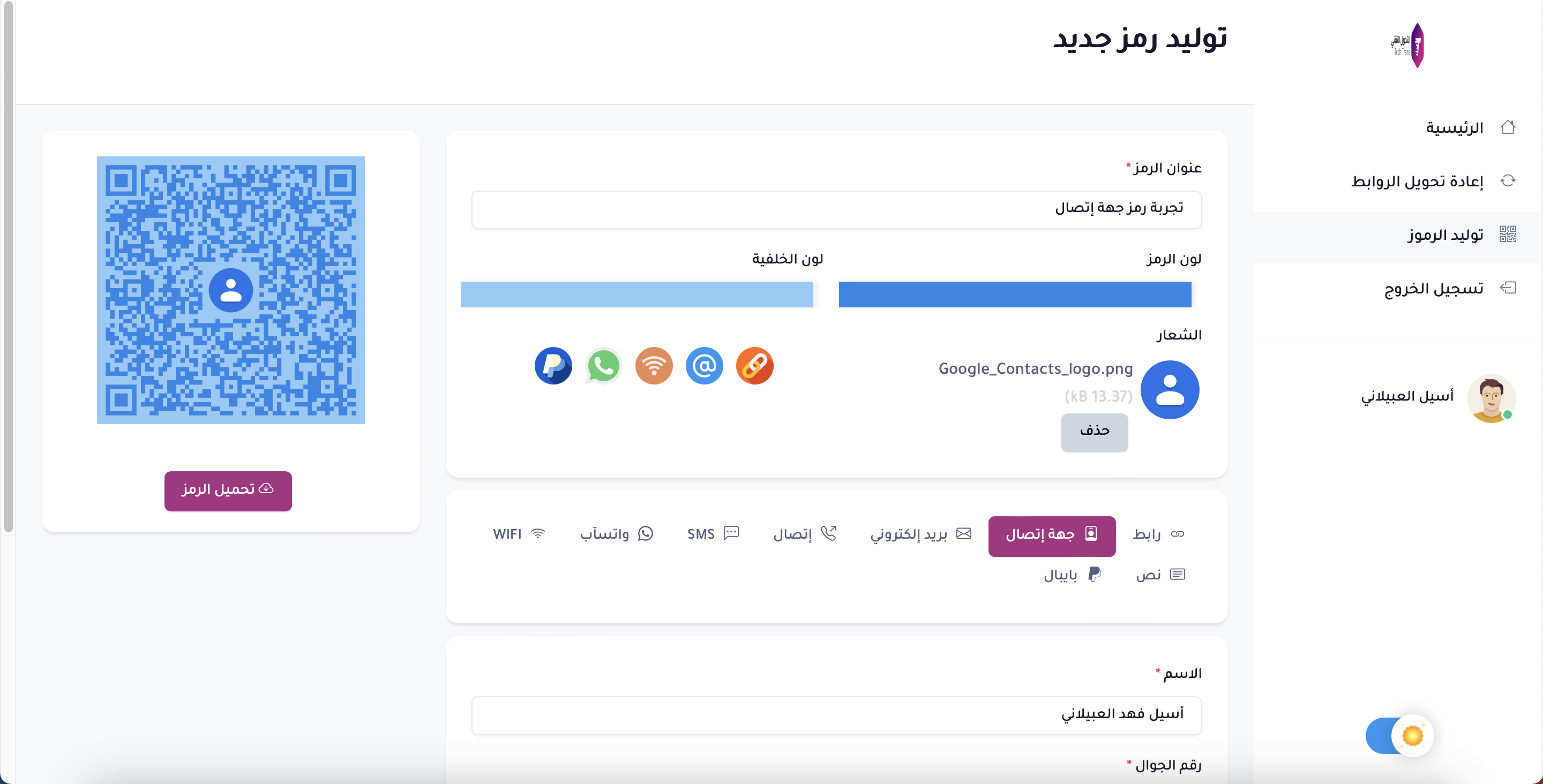- إضافة رمز مولد جديد: من خلال زر إضافة جديد وتعبئة الحقول المطلوبة وهي كالتالي: