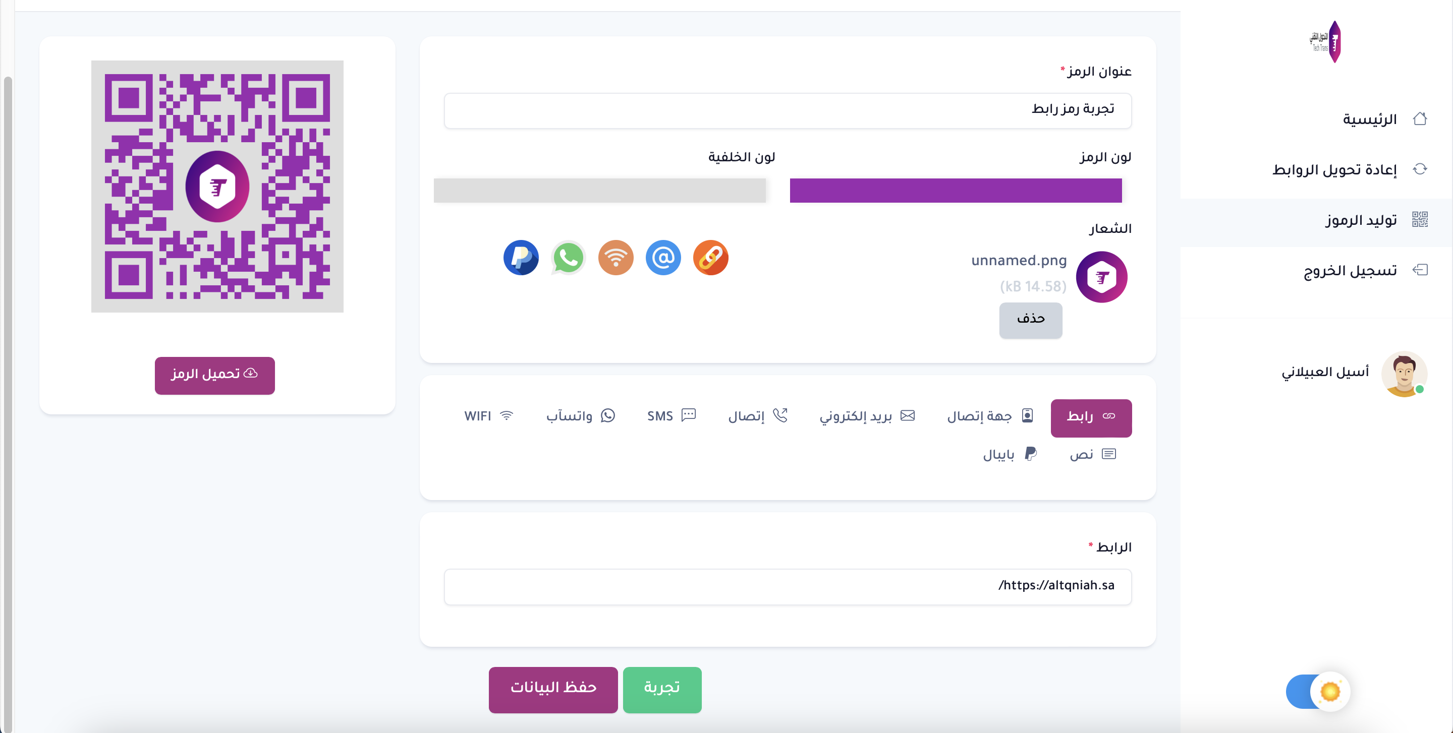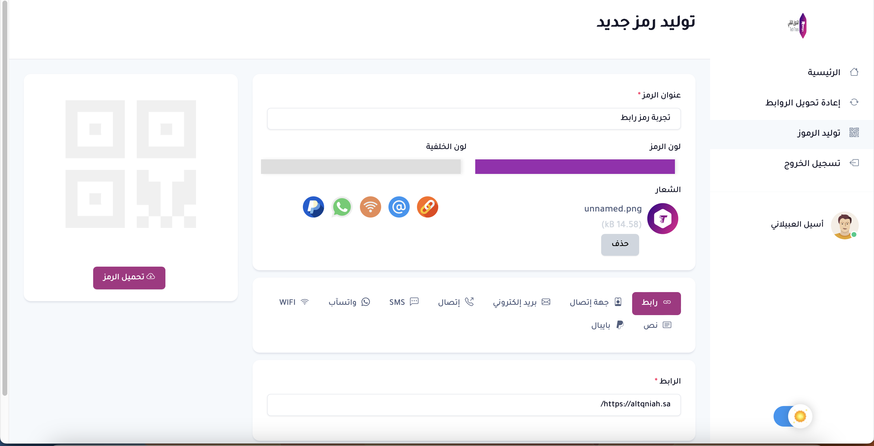يمكن انشاء رابط مختصر من النظام (نوع تحويل مؤقت) ثم إنشاء رمز استجابة لهذا الرابط. بذلك يصبح بالإمكان مستقبلاً تغيير رابط الوجهه النهائية دون اعادة توليد رمز الاستجابة السريع.