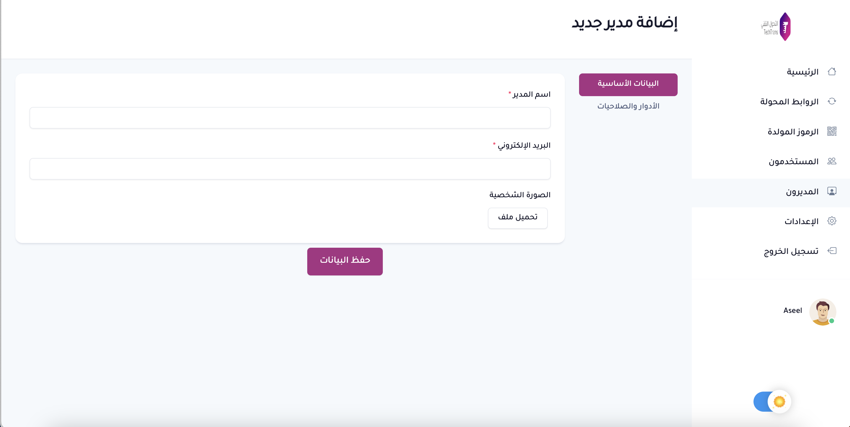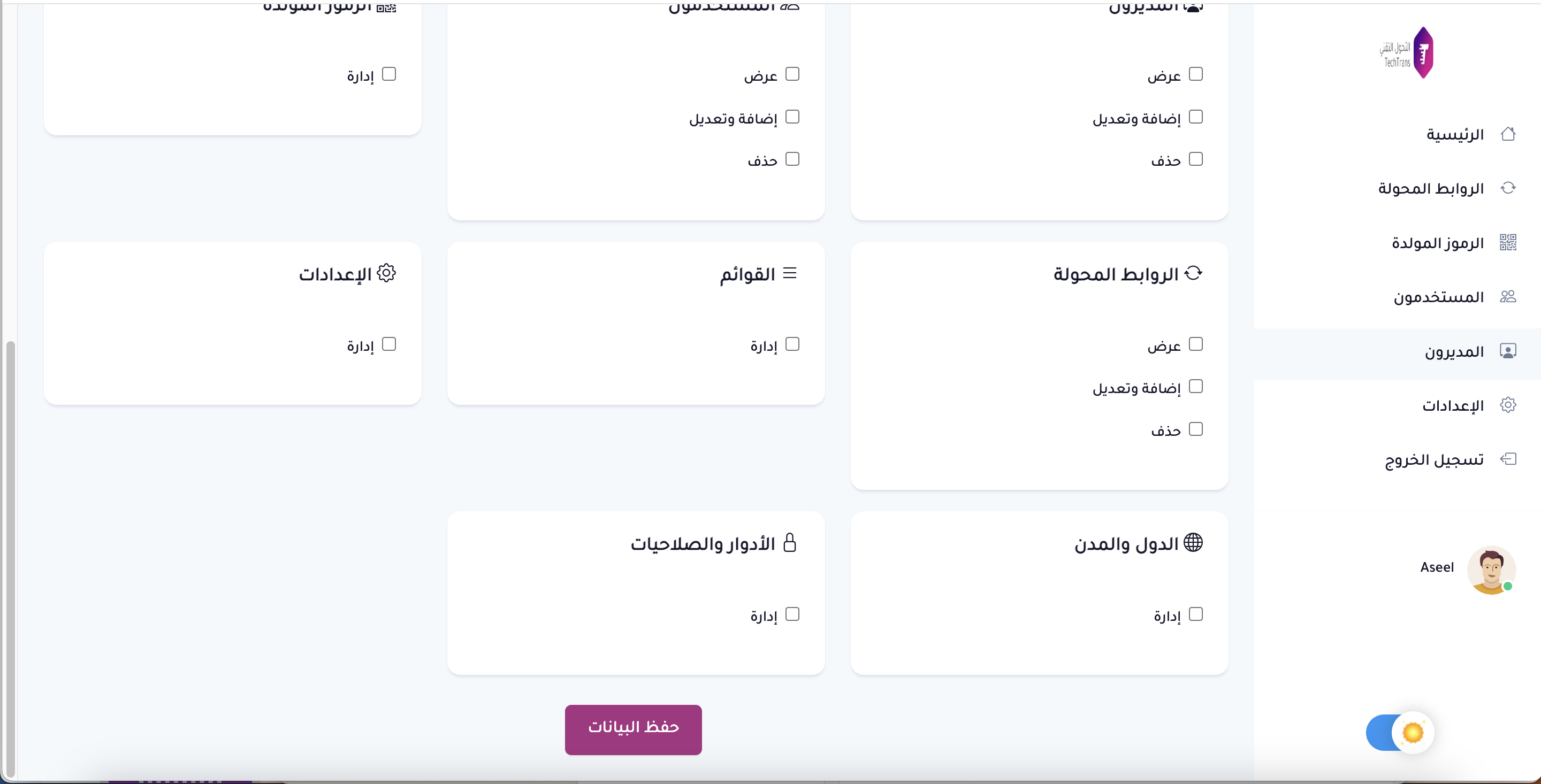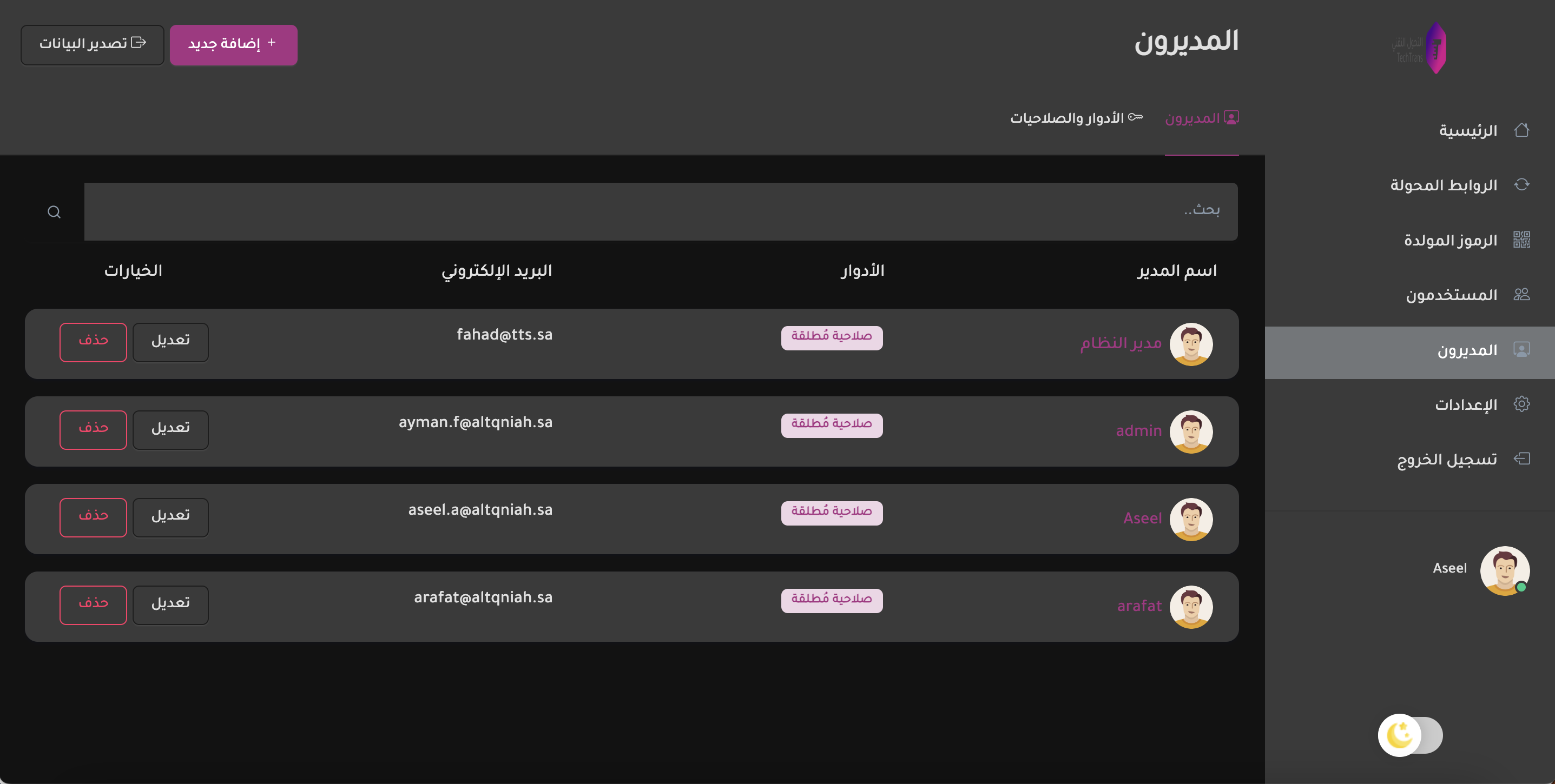 - المديرون: يتم عرض المديرون ويمكنك من خلال هذه الصفحة