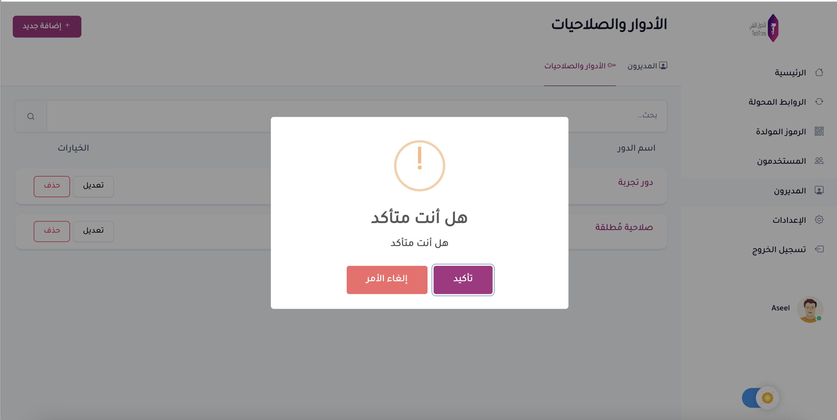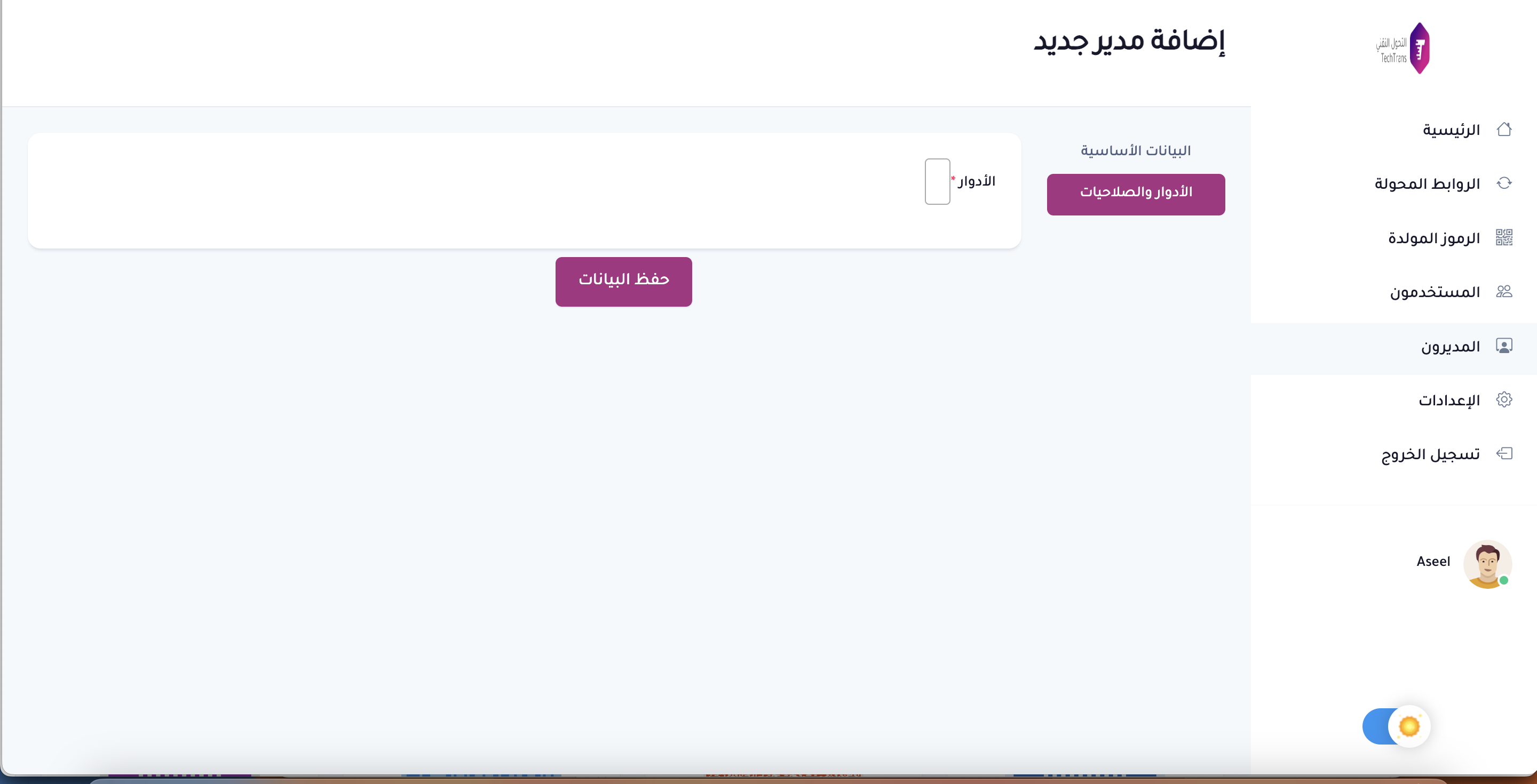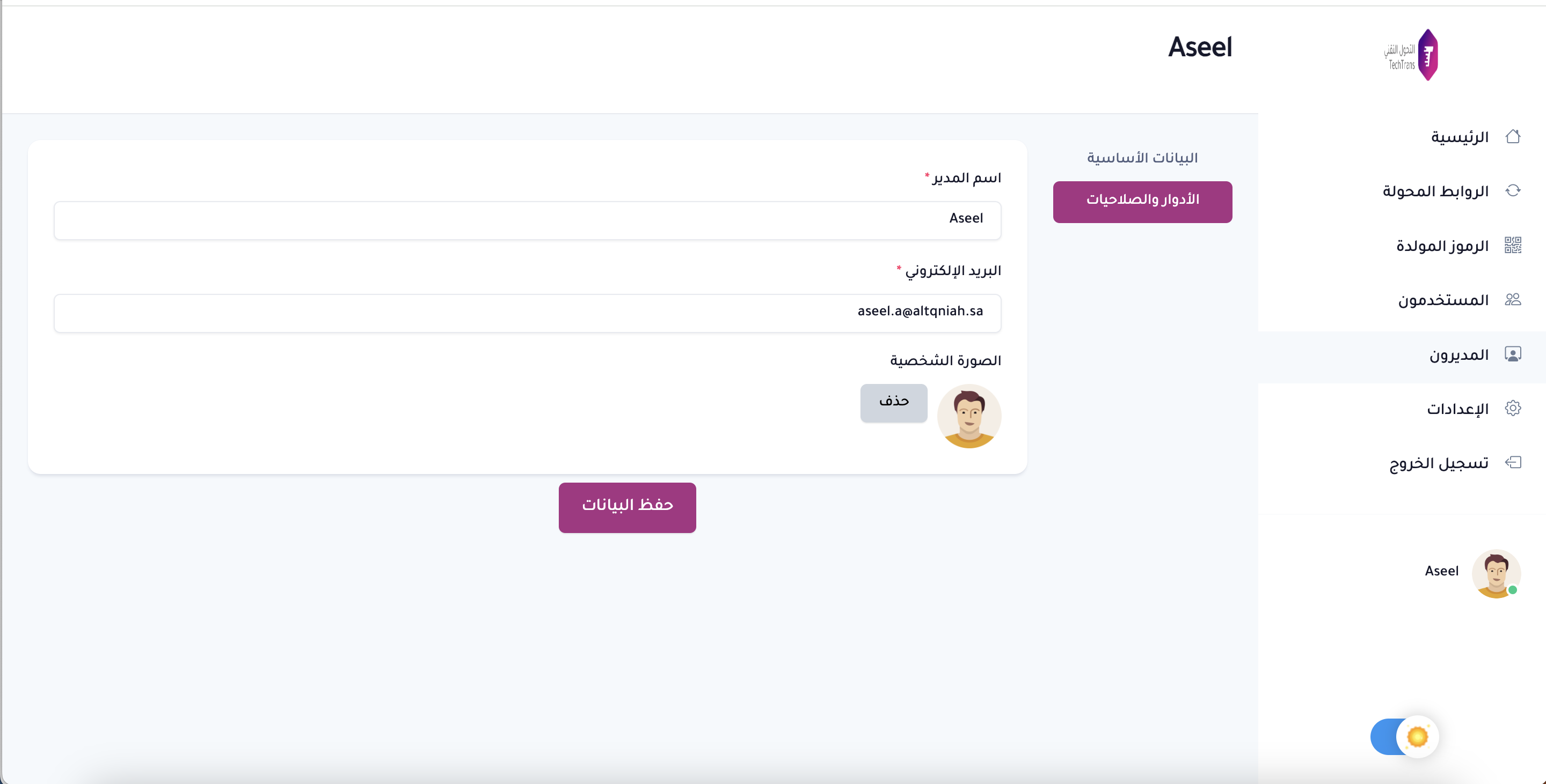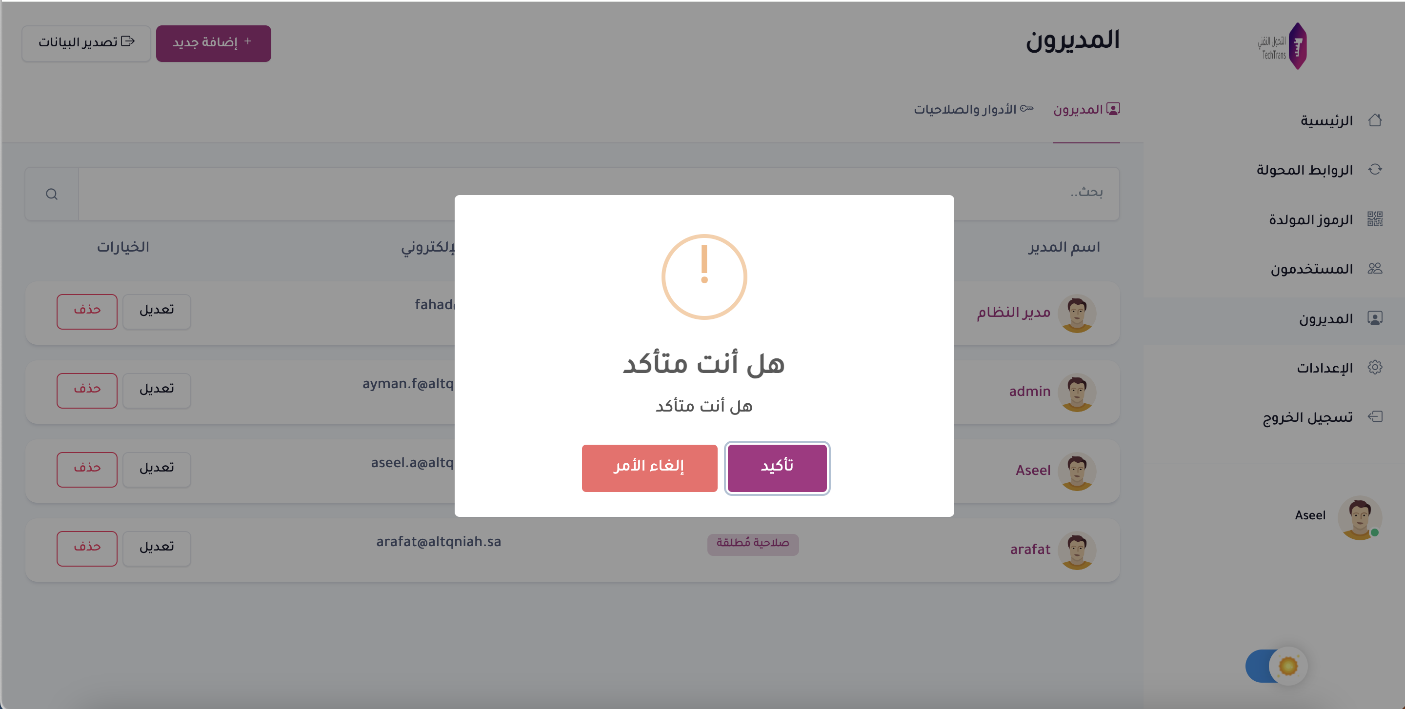 - المديرون: يتم عرض المديرون ويمكنك من خلال هذه الصفحة