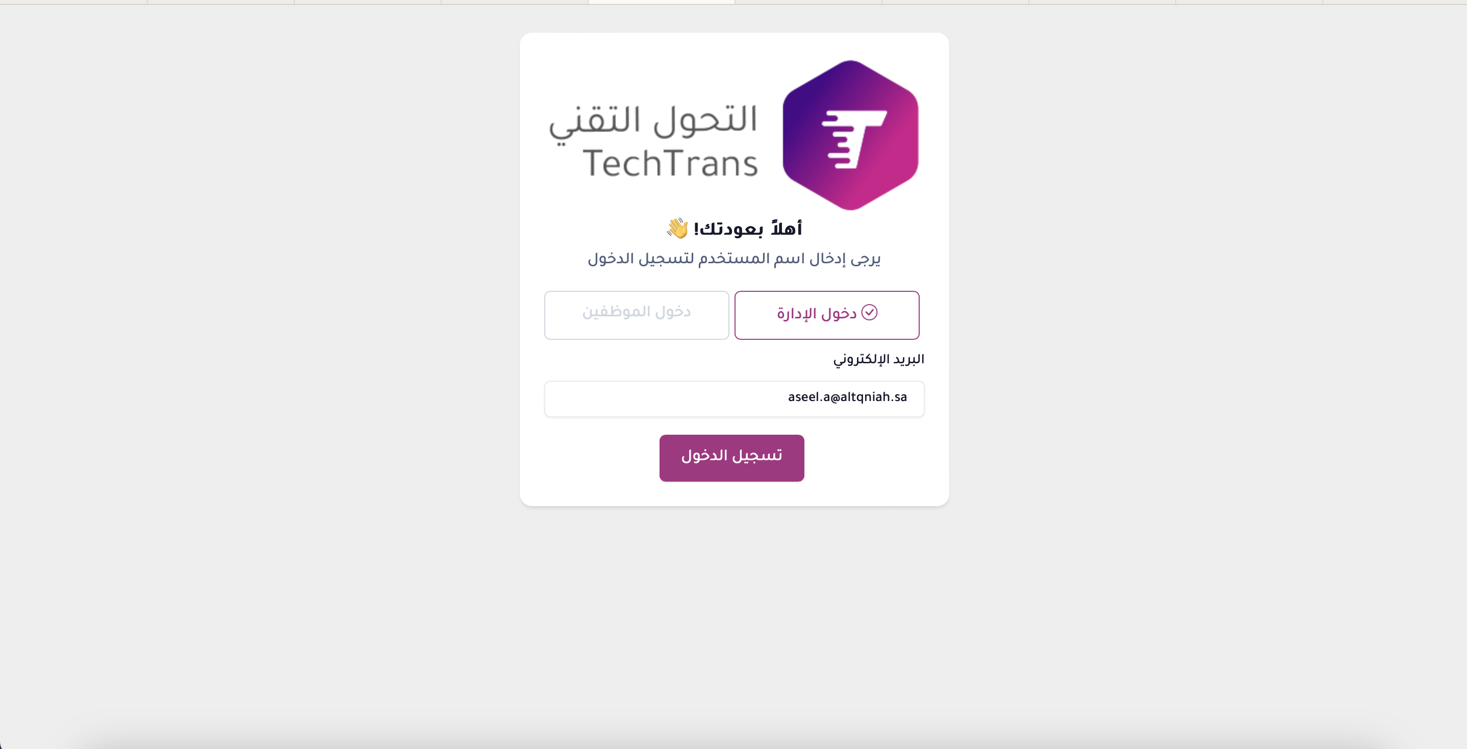 - تسجيل الدخول يتم بالطريقة التالية: كتابة البريد الإلكتروني الخاص بك، وسيتم إرسال رمز تحقق للبريد الإلكتروني.