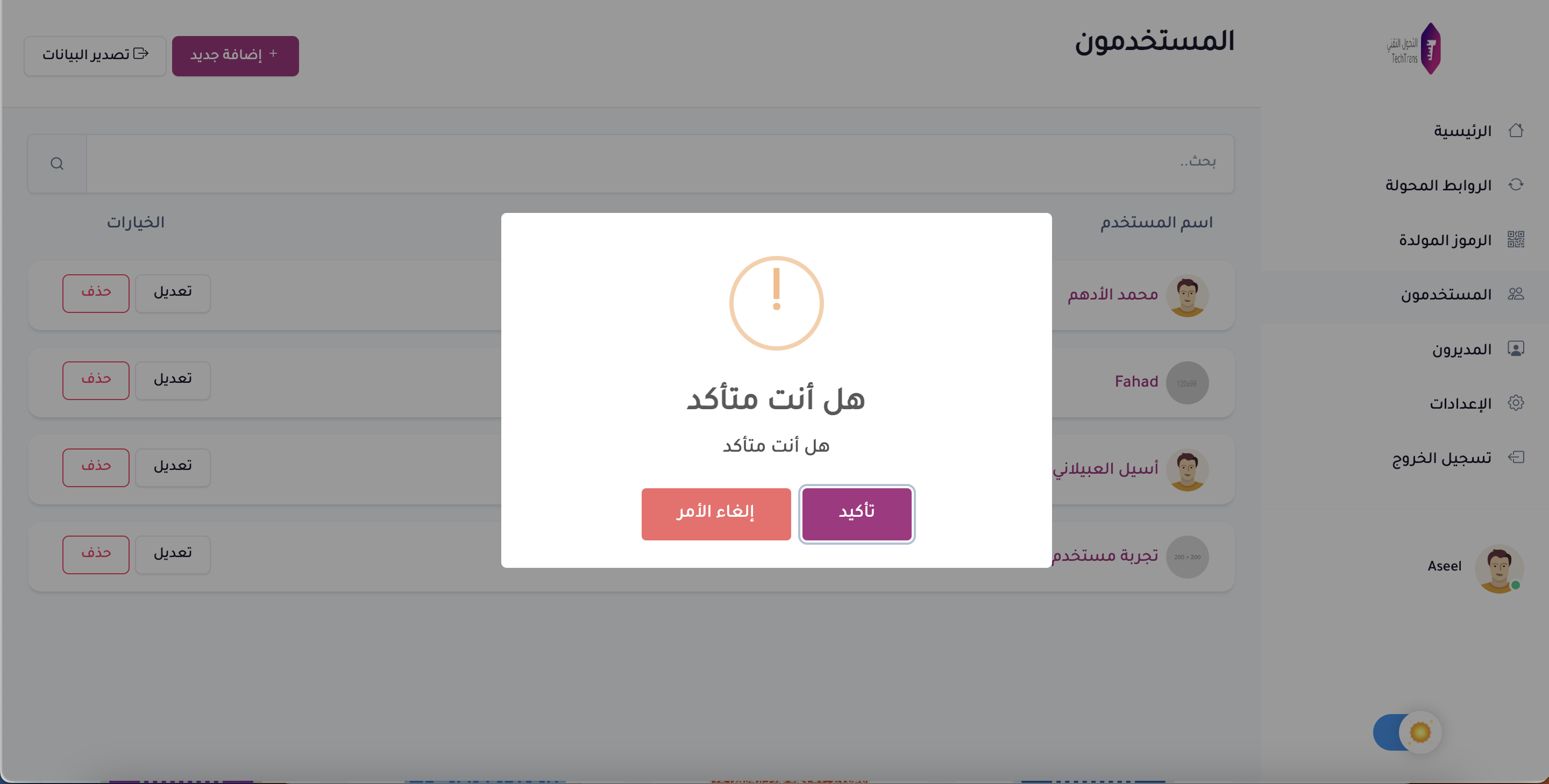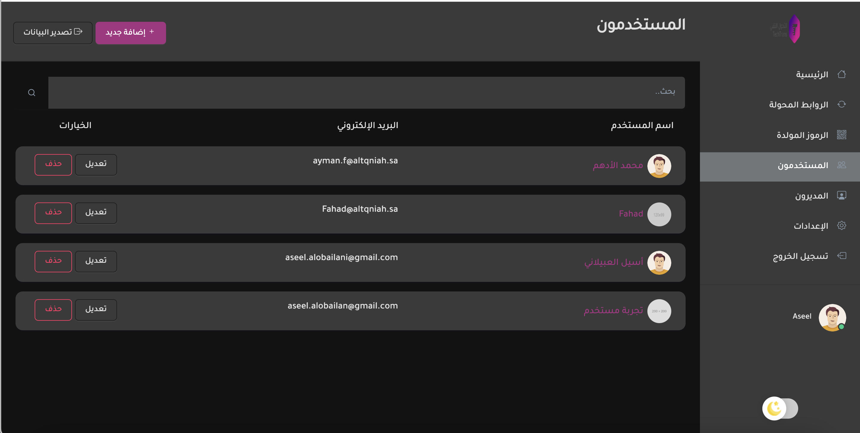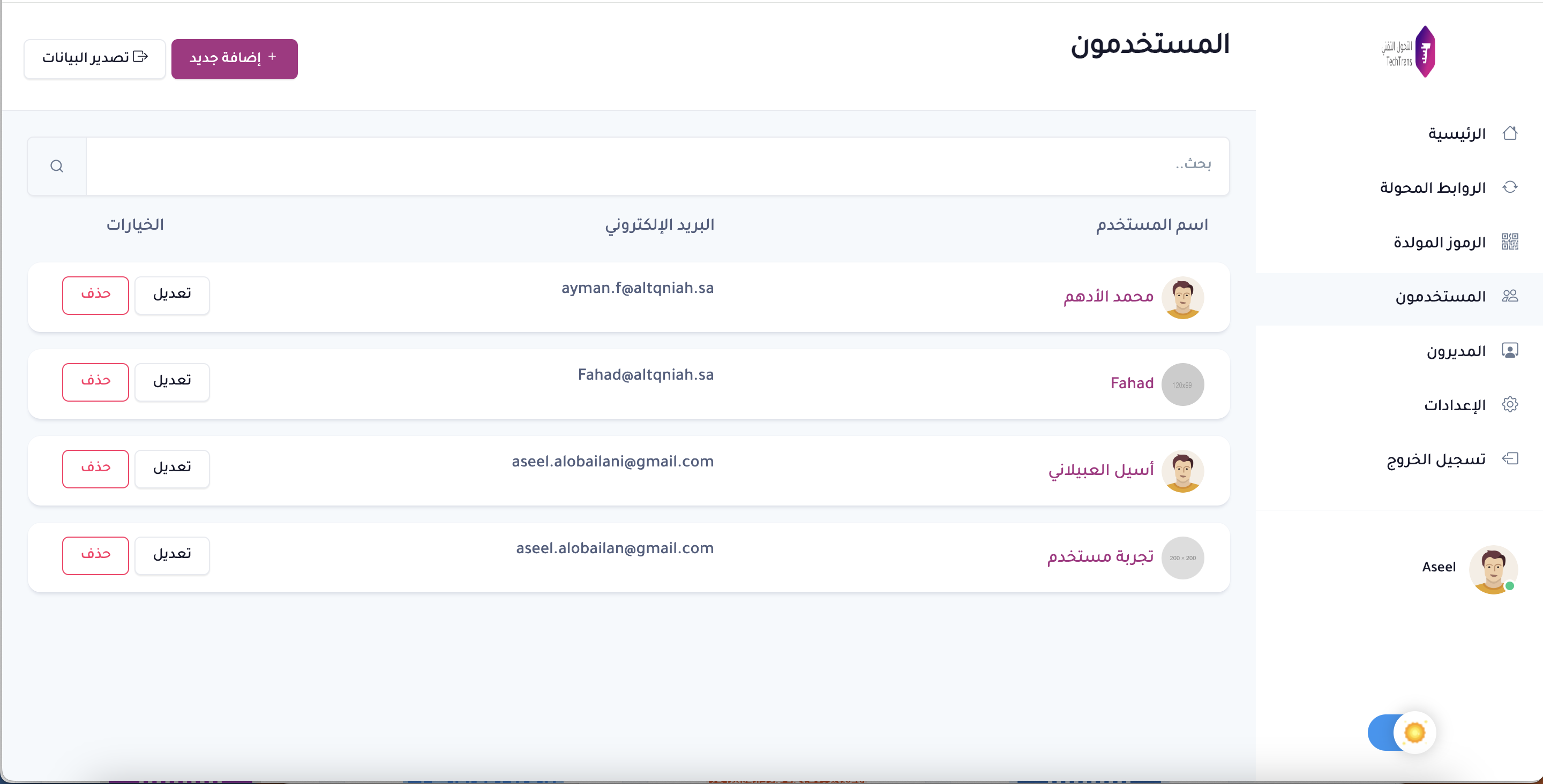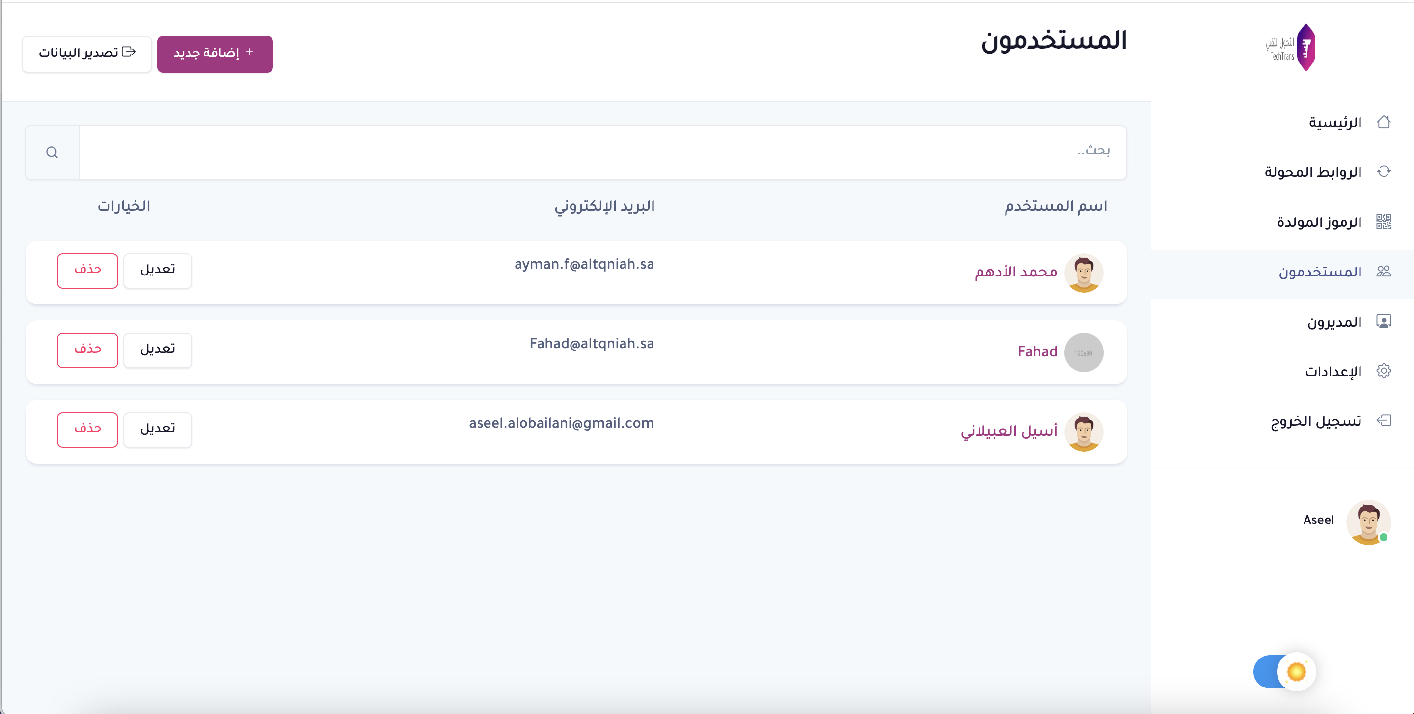 - المستخدمون: يتم عرض المستخدمون ويمكنك من خلال هذه الصفحة