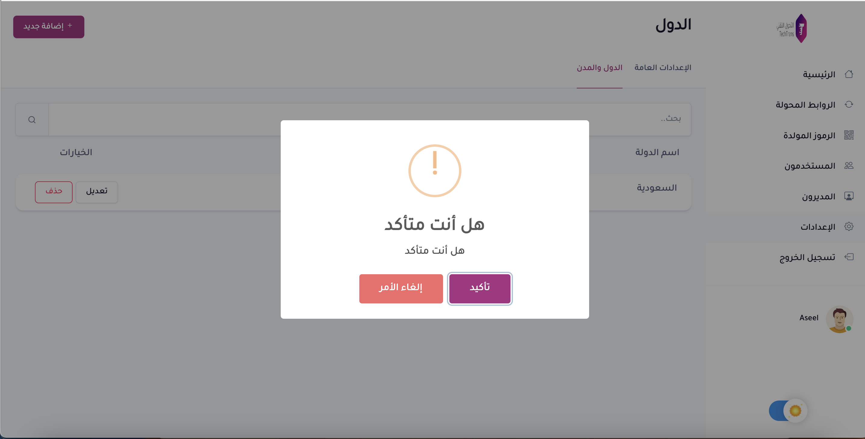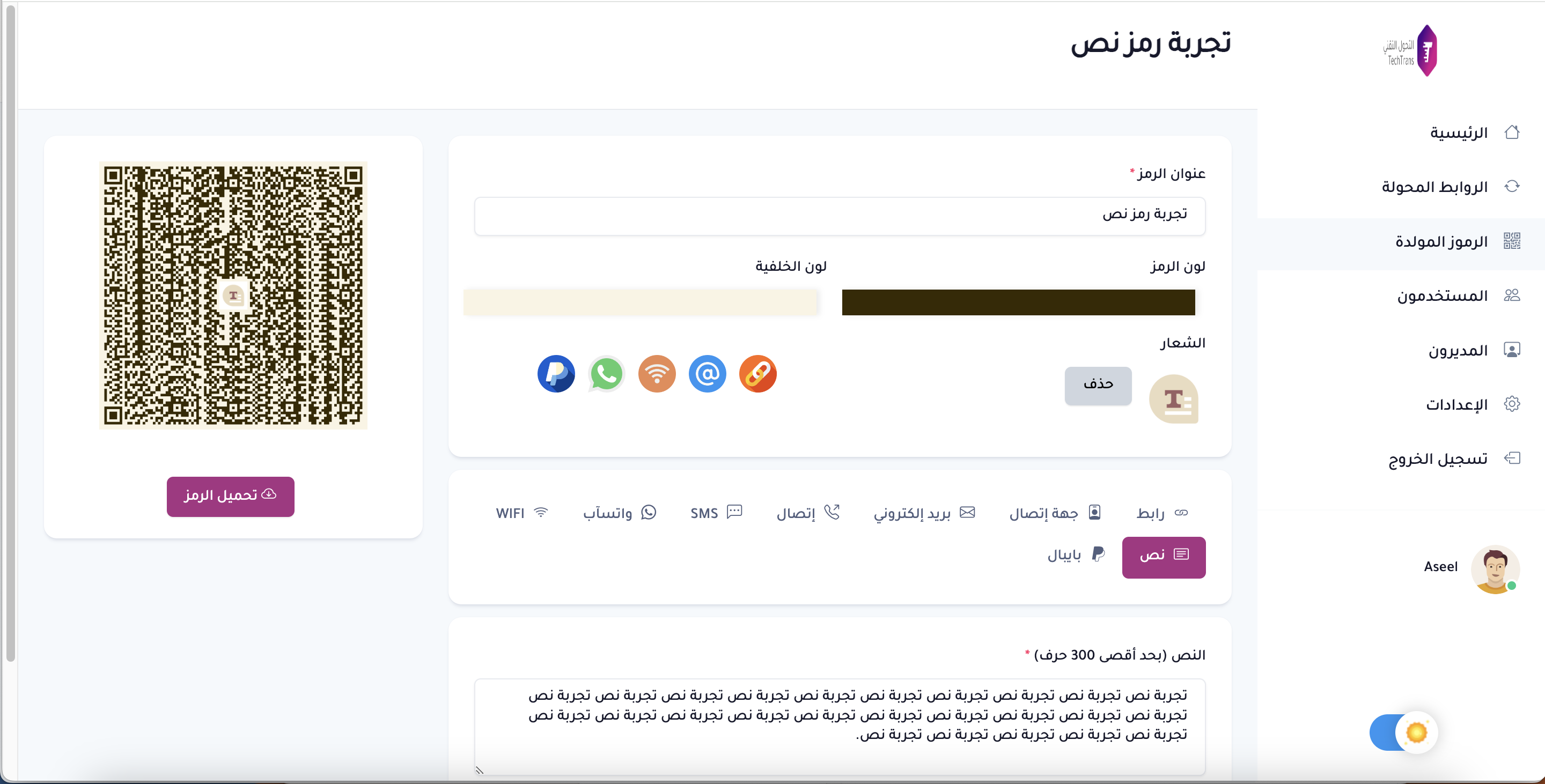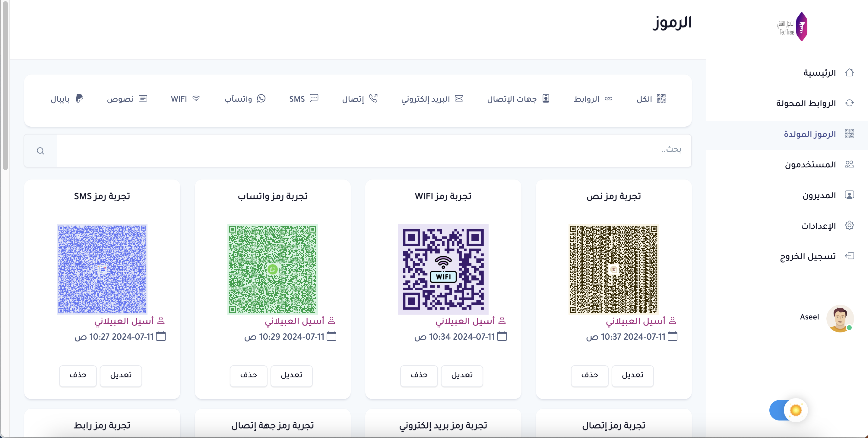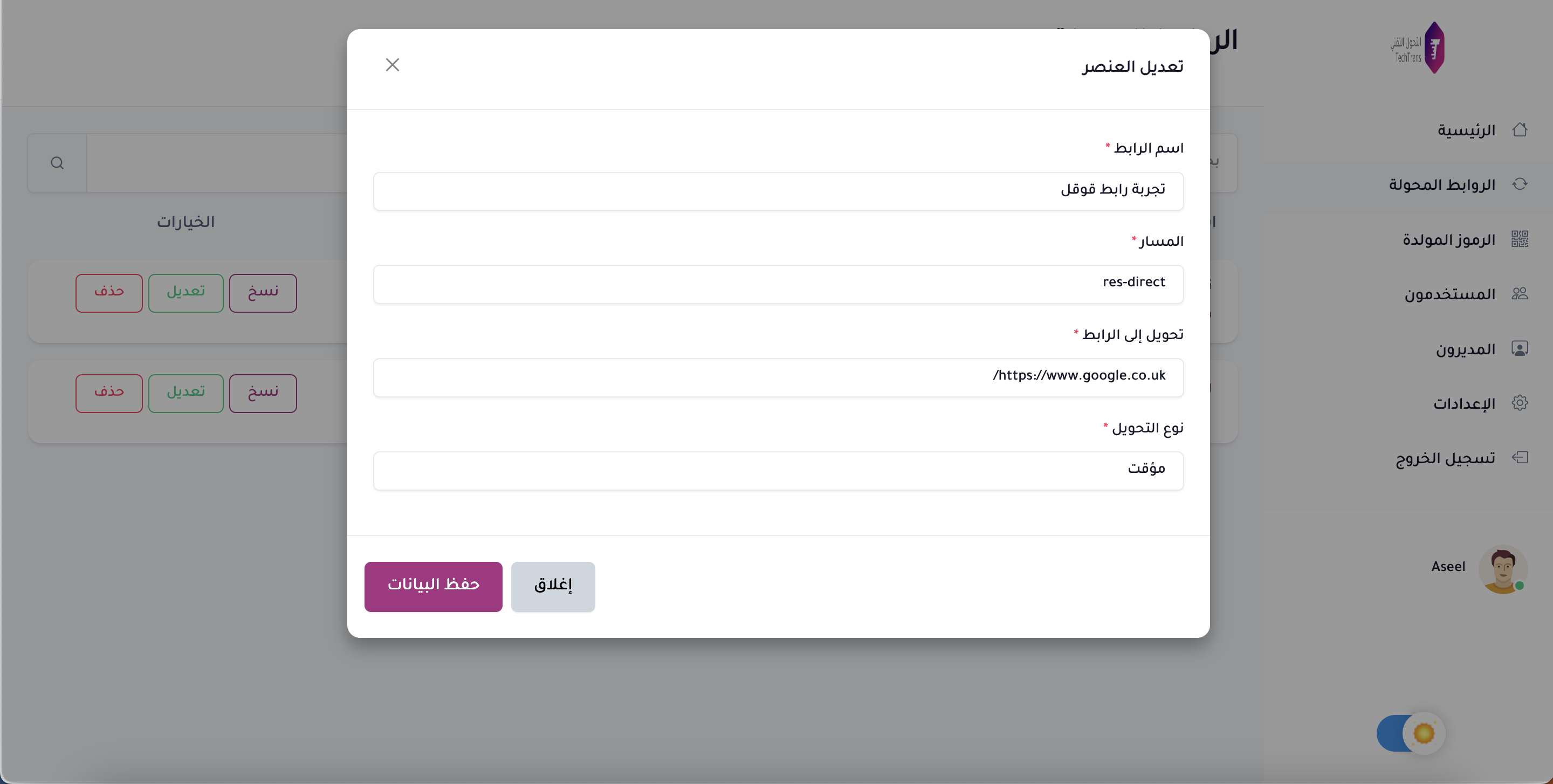 - يتم عرض الروابط المحولة والرموز المولدة التي تمت من خلال المستخدم
