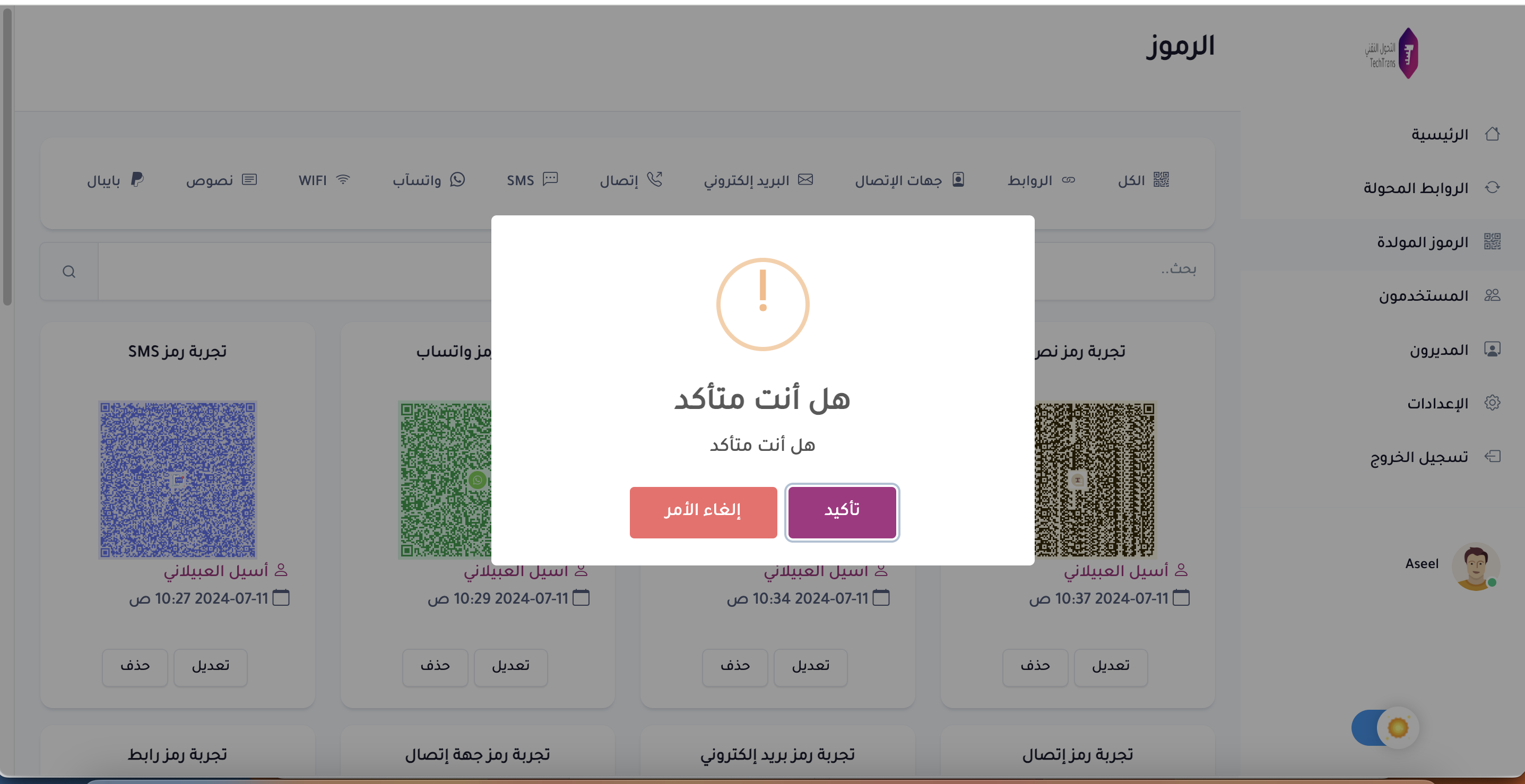 - يمكنك معرفة المستخدم الذي تم من خلاله انشاء الرمز وتاريخ ووقت الانشاء